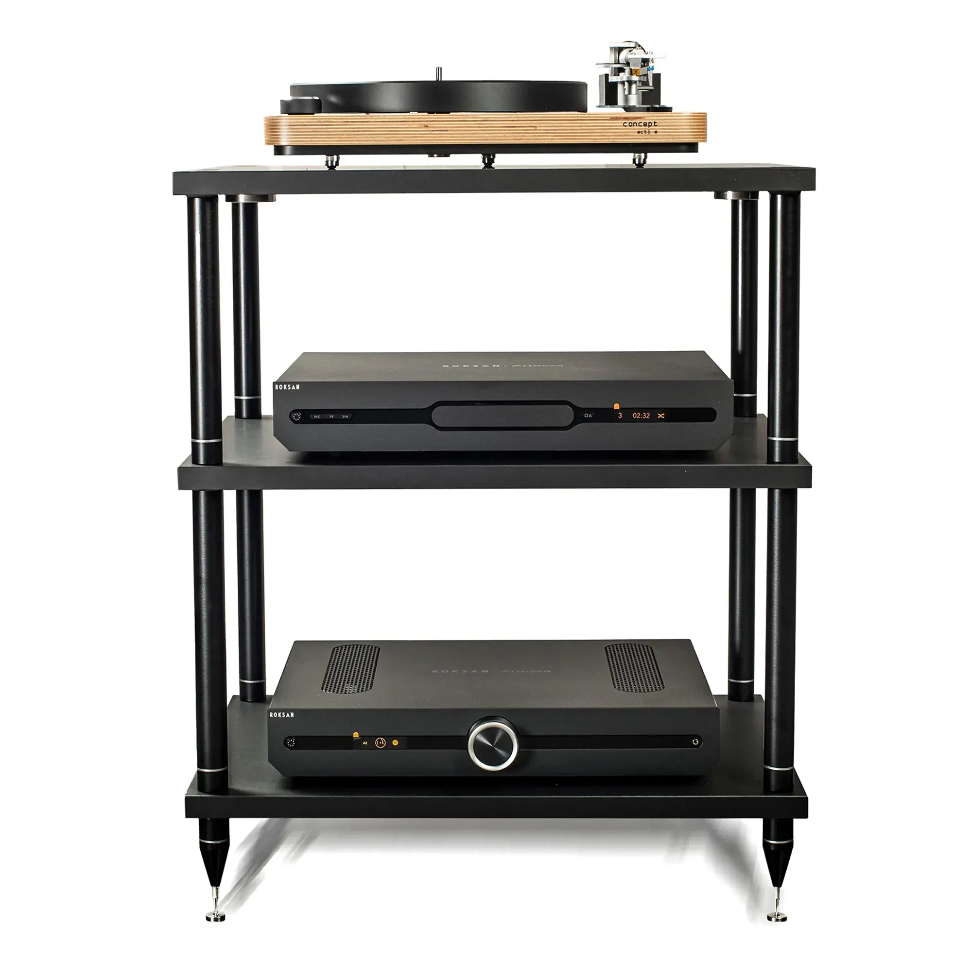 Стеллаж изготовлен из полок из древесноволокнистой плиты высокой плотности (HDF), известной своей исключительной прочностью и акустическими свойствами. Полки HDF служат прочным основанием для аудиооборудования, снижая вибрацию и обеспечивая чистый звук. Модульная конструкция стойки Proton Tower позволяет легко настраивать и расширять ее, что позволяет адаптировать ее к различным потребностям и предпочтениям. Будь то добавление дополнительных полок или регулировка высоты между ними, эта стойка предназначена для того, чтобы расти и развиваться вместе с аудиосистемой пользователя.