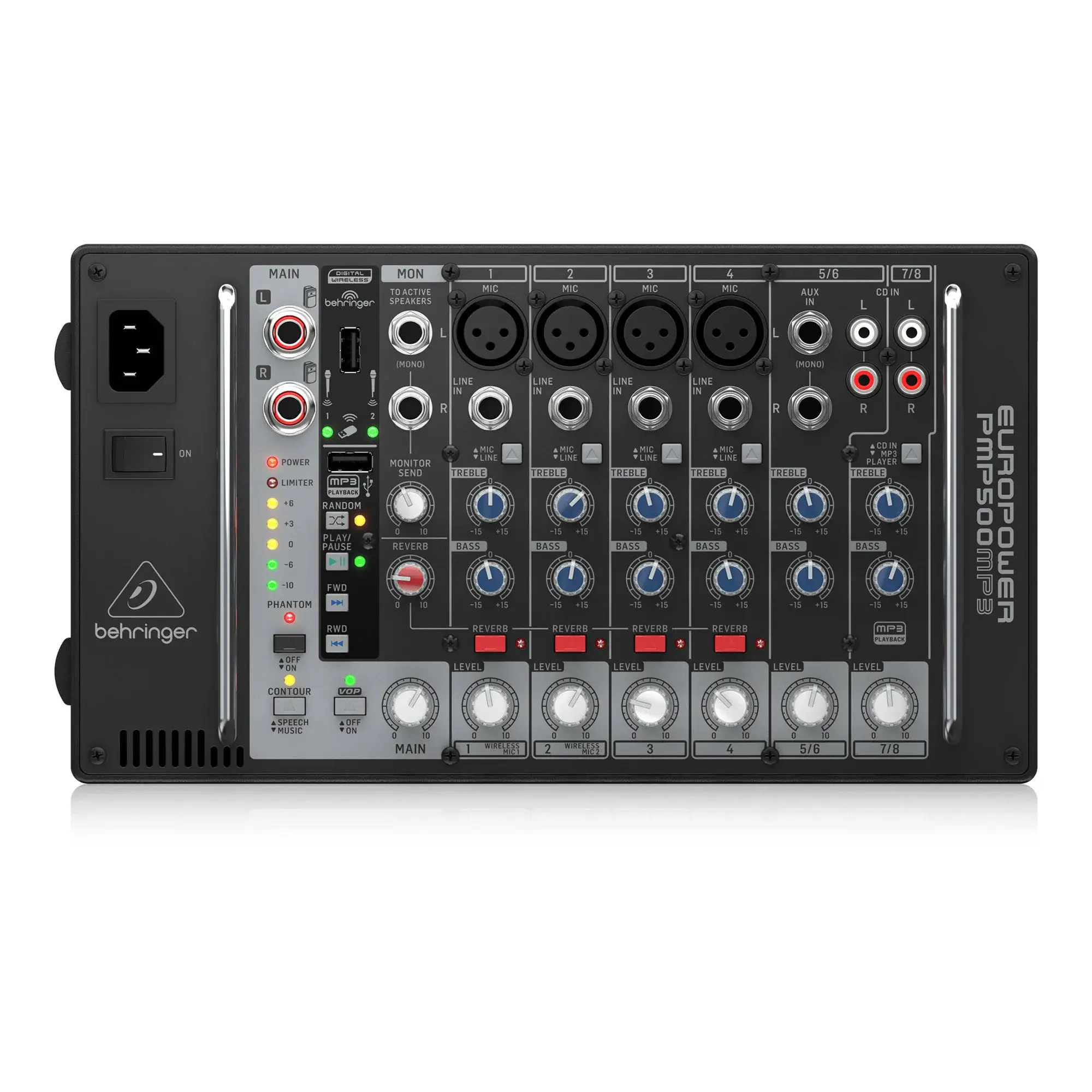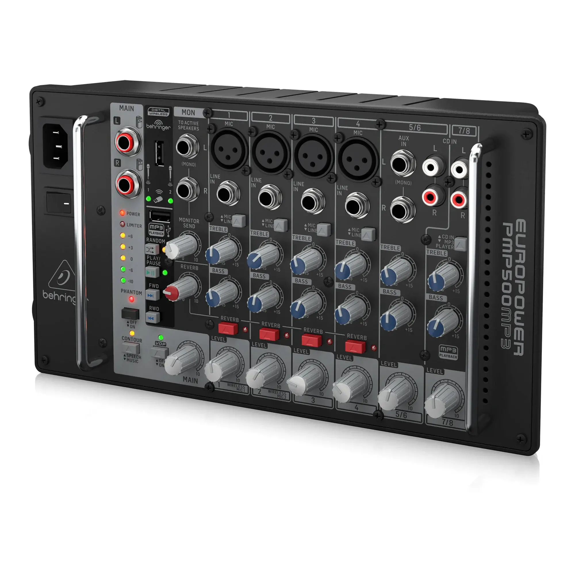 EUROPORT PMP500MP3 обеспечивает четкую и высокоточную работу, при этом весит всего 3 кг. Благодаря 8-канальному микшеру мощностью 500 Вт, встроенному mp3-плееру, реверберации и беспроводному подключению микрофона, PMP500MP3 может легко наполнить большое помещение кристально чистым и ярким звуком, что сделает вас звездой вашего мероприятия!