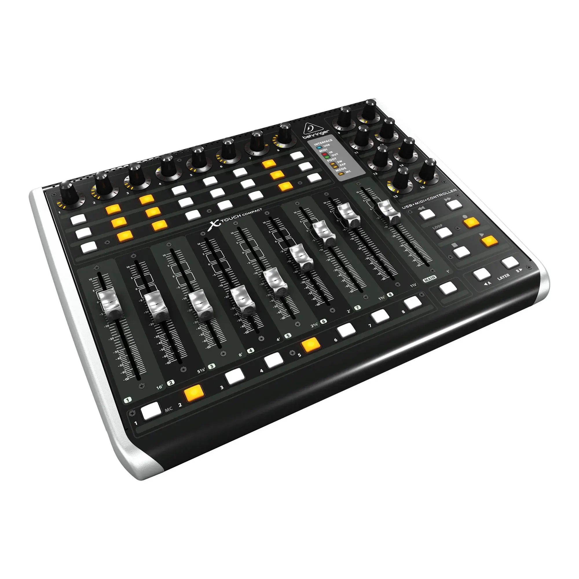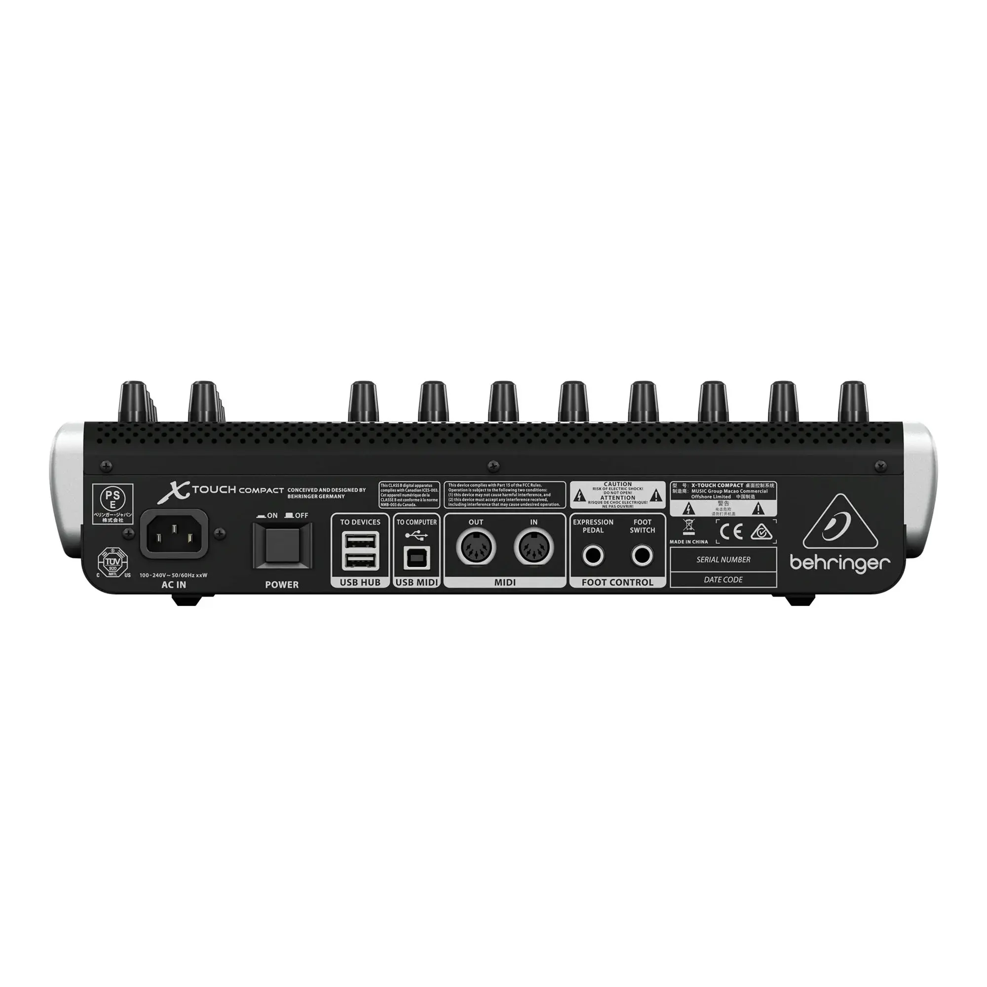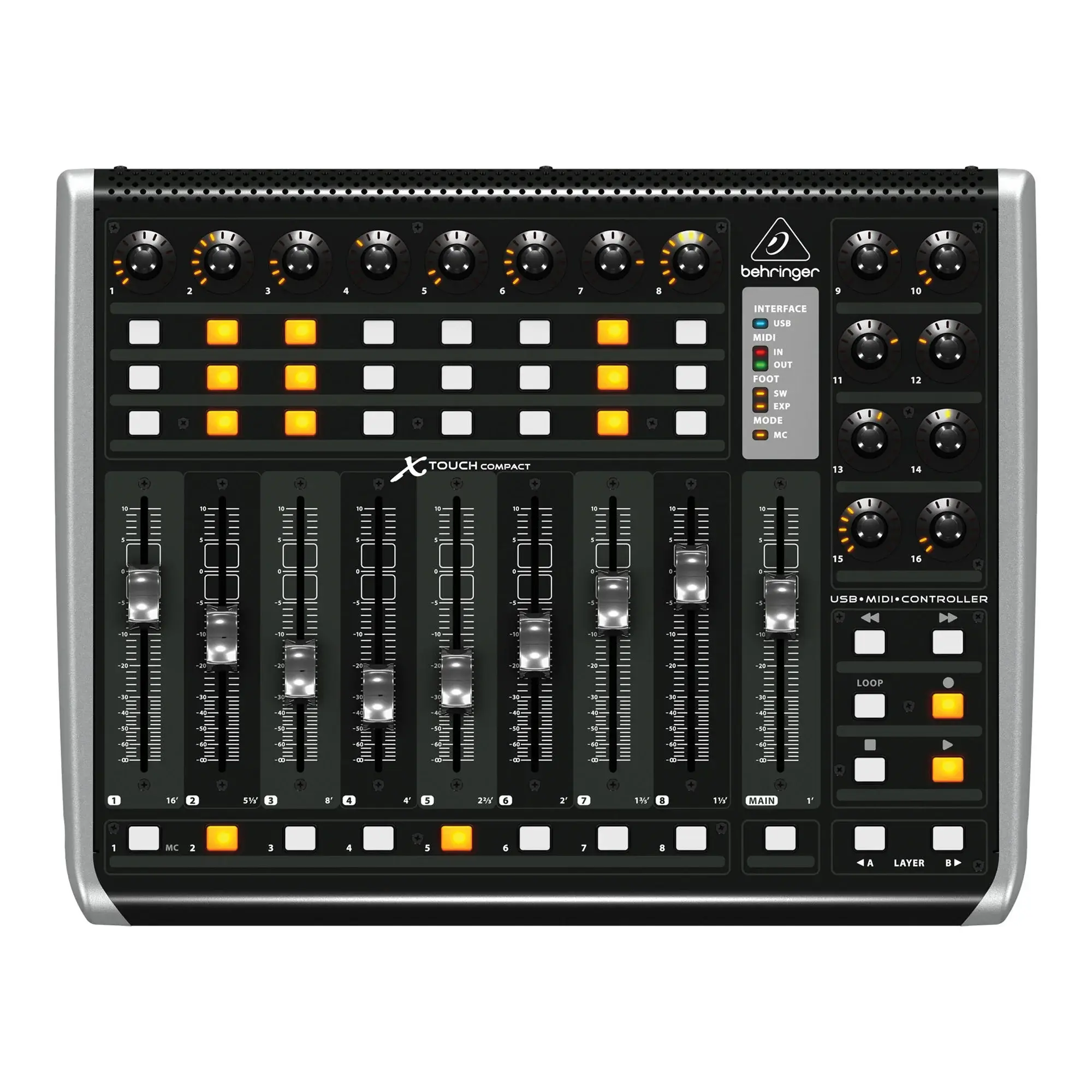 Behringer X-TOUCH Compact — универсальный MIDI-контроллер для работы с DAW, системами управления освещением и внешним звуковым оборудованием. Модель оснащена девятью моторизованными фейдерами 100 мм с сенсорными ручками. Режим Dual-Layer быстро переключает пресеты управления DAW и инструментом.