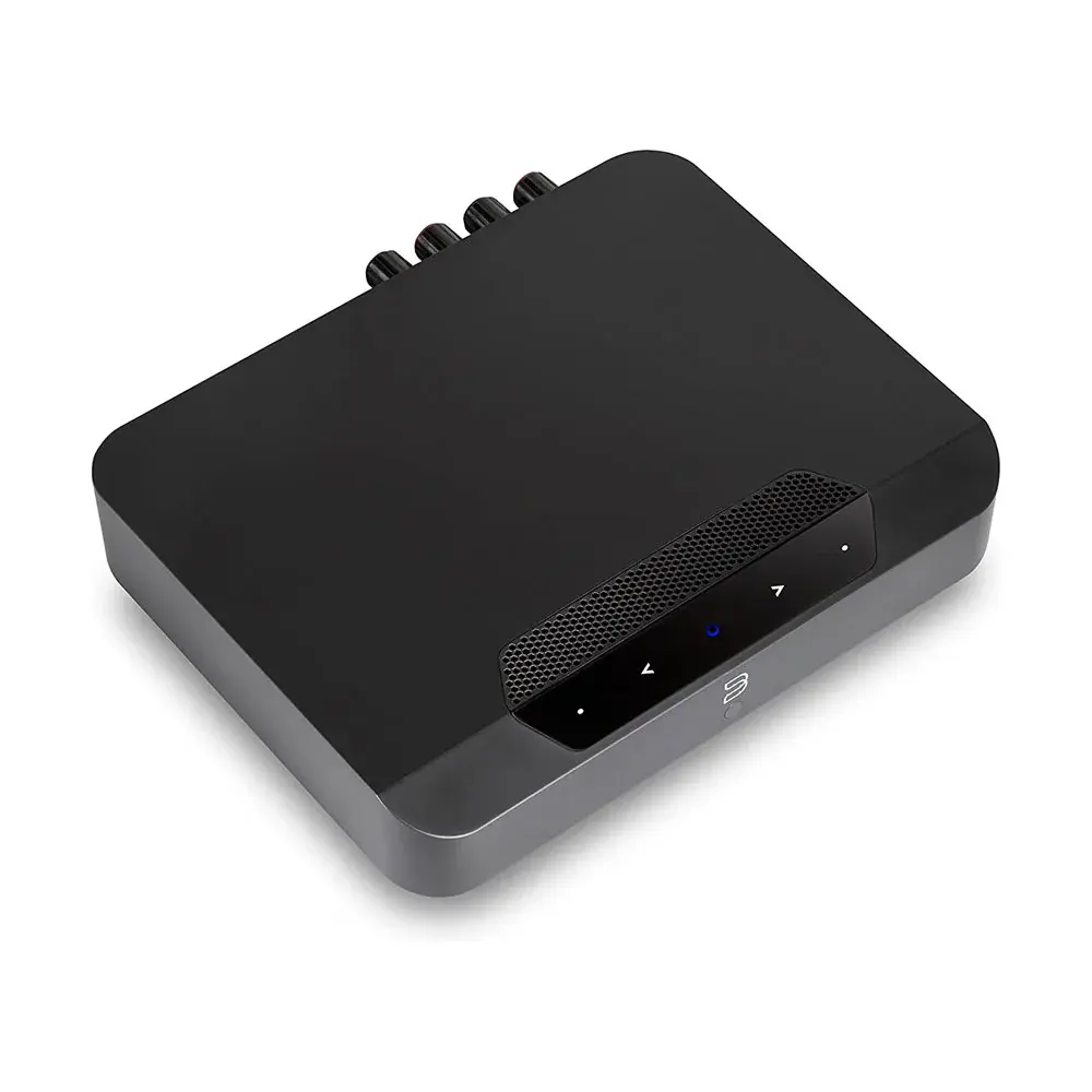 В верхнюю часть компактного корпуса BlueSound PowerNode Edge N230 интегрирована сенсорная панель управления. На задней стенке имеется 3,5 мм комбо-разъем, сочетающий в себе линейный AUX и оптический вход. Там же находится RCA-порт для сабвуфера, USB для внешних накопителей, LAN-порт для интеграции в локальную сеть и актуальный разъем HDMI с поддержкой расширенного возвратного канала eARC, позволяющий подключить проигрыватель к ТВ.