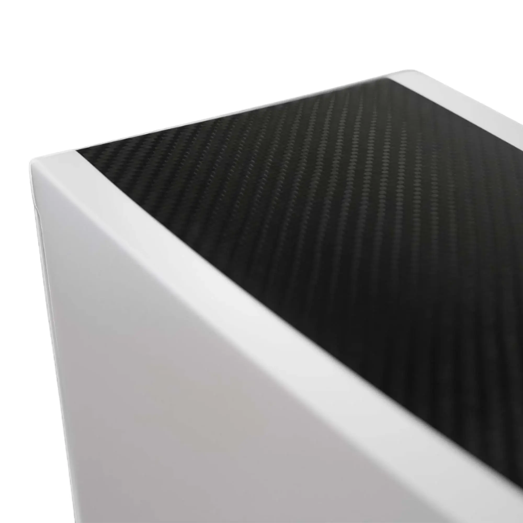 Поверхность корпуса элегантно отделана черным рояльным лаком и усилена вставками из углеродного волокна. Корпус изготовлен из прочного армированного древесного композита, который устраняет звуковые искажения и снижает механические воздействия, включая гистерезис. Такая конструкция обеспечивает превосходное воспроизведение звука.