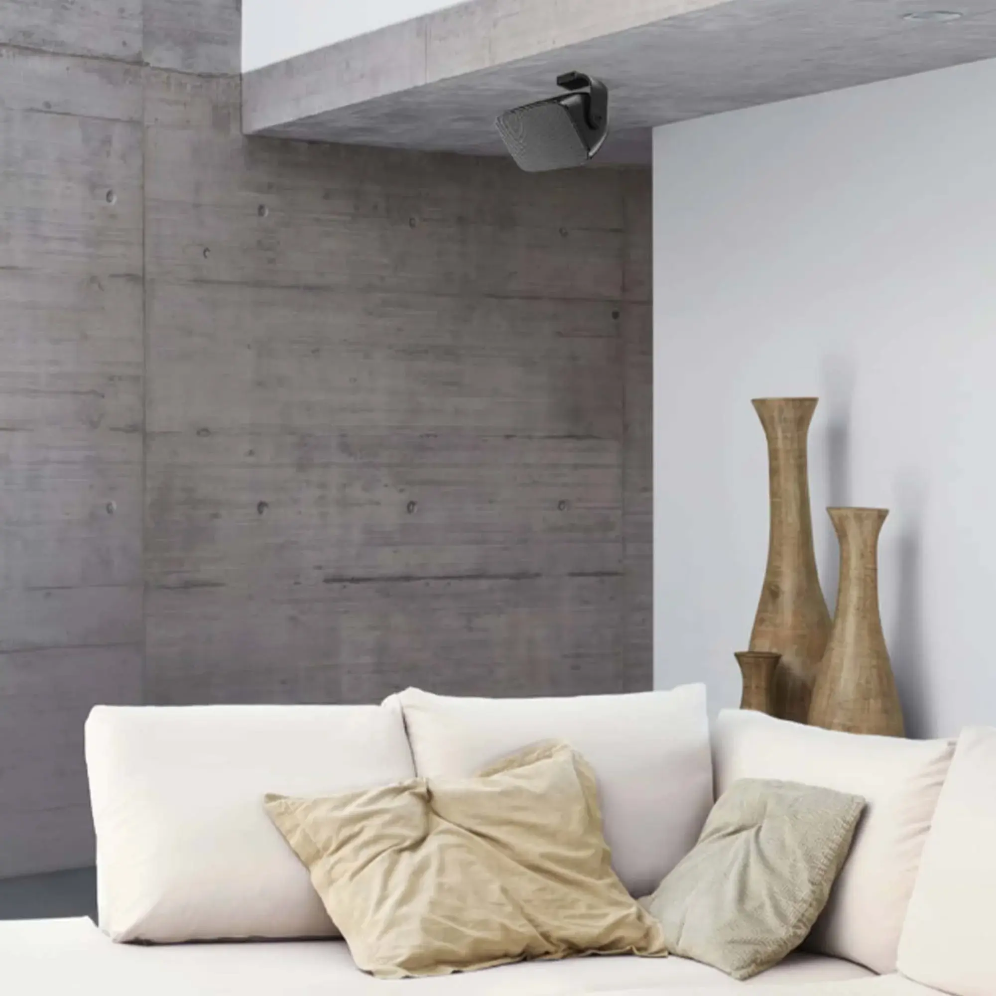 Bowers & Wilkins AM-1 оснащены качественным разделительным фильтром, выполненным на отборных компонентах, и вносящим в сигнал минимальные фазовые и частотные искажения. Колонки обладают 8-омным импедансом и довольно высокой чувствительностью, обеспечивающими хорошую совместимость с различными усилителями. АС можно устанавливать на стене горизонтально или вертикально, а поворотный кронштейн позволяет наклонять их под углом вниз, в направлении озвучиваемой зоны. Корпус B&W AM-1 выполнен из качественного пластика ABS, усиленного стекловолокном, и имеет внутренние ребра жесткости.