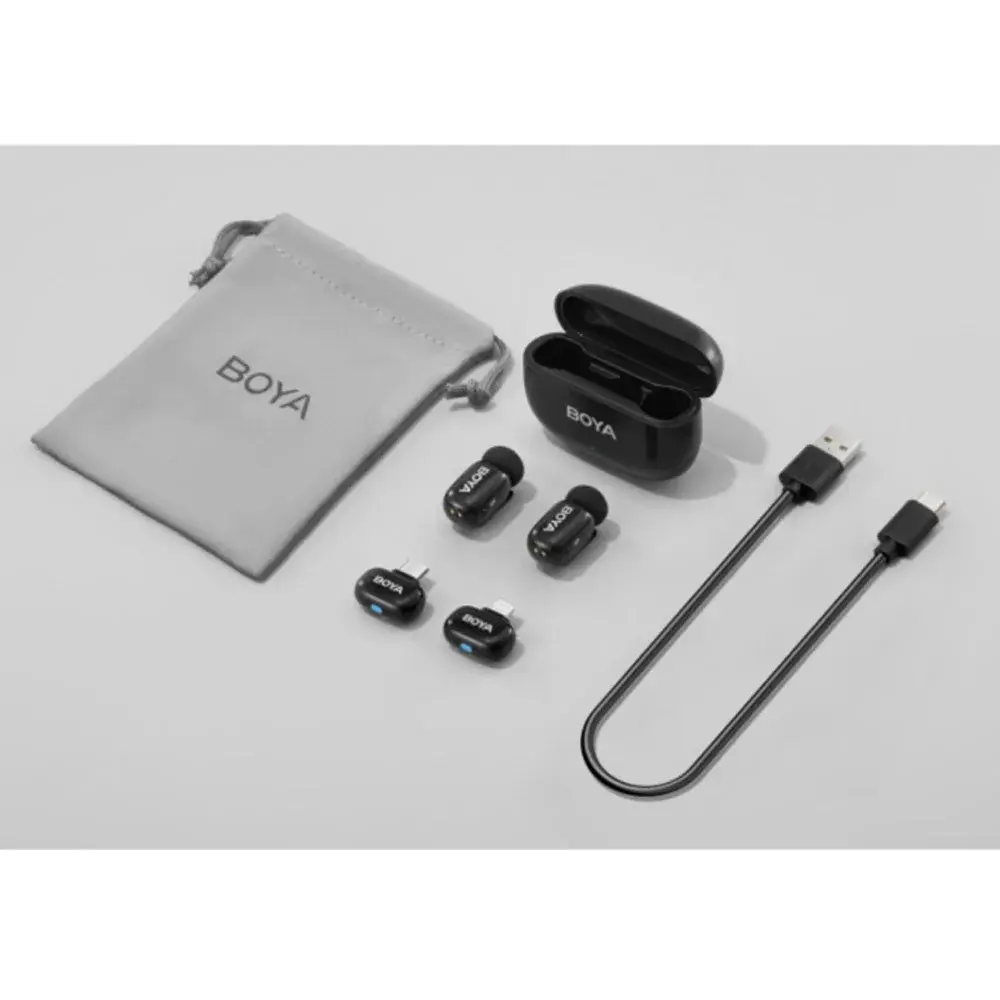 Boya BoyaMini-12 - беспроводная микрофонная система 2,4 ггц. Особенности: ️3-ступенчатая шумоподавление Al; ️обеспечивает звук HD-качества; ️беспроводное соединение - подключи и работай; ️обеспечивает надежную дальность передачи до 100 м; ️воспроизведение через динамик устройства без отключения приемника; ️оснащен портативным чехлом для зарядки, позволяющим записывать до 30 часов; отношение сигнал/шум: ≥80 дБ; форматы записи: 48 кГц/24 бит; ️работает как с устройствами iOS (iPhones и iPad), так и с телефонами Android с портами Type-C. Boya BOYAMINI-12 - ультракомпактная портативная беспроводная микрофонная система 2.4 ГГц. Обеспечивает автоматическое повторное подключение и выборочное снижение чувствительности, что обеспечивает исключительную гибкость записи. Он использует определенные алгоритмы Al для изменения вашего голоса в режиме реального времени, чтобы обеспечить очень приятное прослушивание. Благодаря простоте управления система совместима со смартфонами, планшетами, компьютерами и т. д. Boya Mini-12 идеально подходит для создания контента, прямых трансляций, мобильной журналистики и многого другого. Приемник Lightning iOS и приемник USB-C питаются от смартфона во время использования. Каждый передатчик обеспечивает до 6 часов записи на одном заряде. Кроме того, входящий в комплект чехол для зарядки позволяет заряжать передатчики в пути. Комплектация: зарядный кейс - 1 шт; приемник Lightning - 1 шт; приемник USB-C - 1 шт; передатчик-микрофон - 2 шт; поролоновая ветрозащита - 2 шт; чехол - 1 шт; кабель USB - 1 шт; документация.