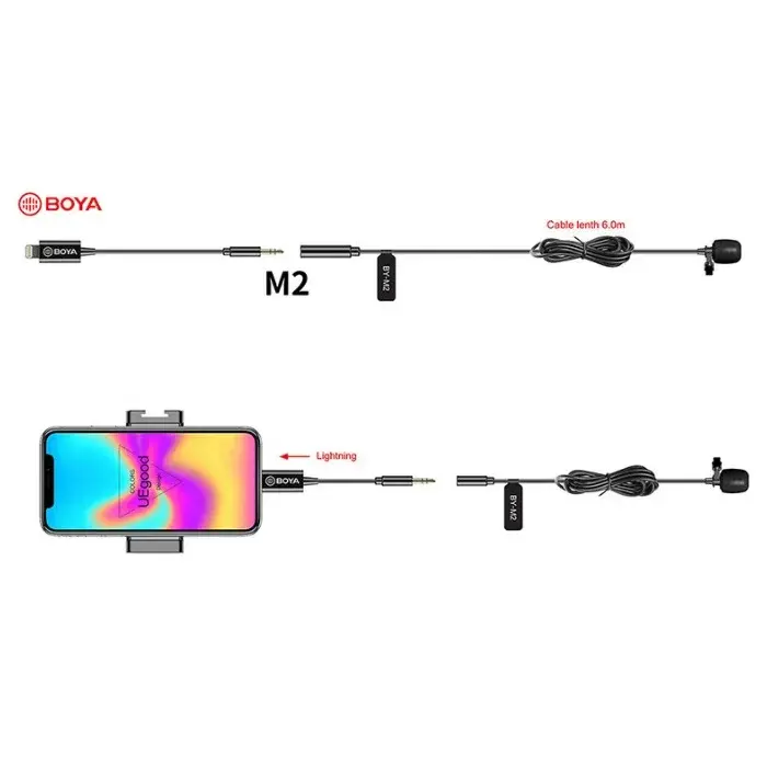 BY-M2 позволит записать чистый и высококачественный звук напрямую на все устройства iOS через порт Lightning. Это идеальный выбор для записи интервью, видеоблогов, презентаций и многого другого, независимо от того, снимаете ли вы видео или записываете аудио с помощью приложения на своем устройстве. Данный продукт состоит из 2 частей: кабеля с разъёмами TRS 3,5 мм «папа»/Lightning и петличного микрофона с разъемом 3,5 мм «мама». Разборный дизайн позволит вам также подключать другие аудиоустройства с 3,5 мм выходом TRS, такие как RX8 Pro, BY-MM1 и т.д., к устройствам iOS. Особенности: всенаправленный микрофон с зажимом; разборный дизайн для возможности использования с различными устройствами; сертифицированный Apple Mfi Lightening разъём; возможность подключения других микрофонов с 3,5 мм TRS выходом к iOS устройствам; не требует батареек; Комплектация: микрофон; поролоновая ветрозащита; зажим на одежду; кабель с разъёмами TRS 3,5мм / Lightning; сумка для транспортировки; документация.