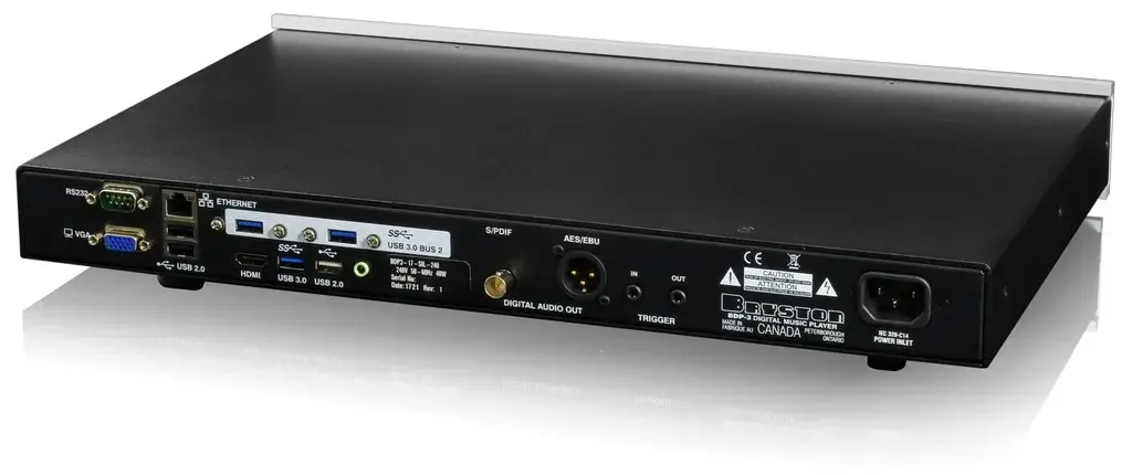 Проигрыватель работает под управлением ОС Linux, оптимизированной для высококачественного воспроизведения аудиофайлов высокого разрешения (PCM до 384kHz / 32 bit и DSD128) с внешних и внутренних накопителей и сетевых источников, включая Интернет-вещание. Цифровые выходы AES/EBU и S/PDIF выполнены по спецификации IAD с трансформаторной развязкой и согласованным импедансом. Джиттер ниже предела измерения. Как и все устройства Bryston, BDP-3 может быть как чёрного, так и серебристого цветов, а также в исполнении передней панели 17 или 19 дюймов (без возможности монтажа в рэк)