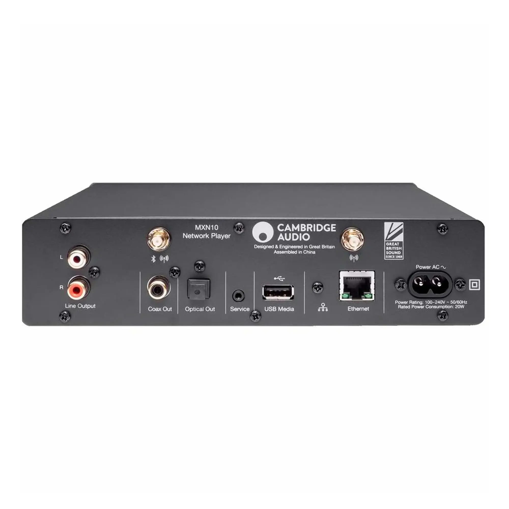 Сетевой проигрыватель поддерживает множество методов и сервисов потоковой передачи, включая Wi-Fi, AirPlay 2 , Chromecast, UPnP, устройство поддерживает Roon. Поддержка потоковых сервисов включает Spotify Connect, Tidal и Qobuz с возможностью подключения к устройству через Bluetooth (кодеки SBC и AAC). Cambridge Audio MXN10 поддерживает следующие форматы файлов: ALAC, WAV, FLAC, AIFF, DSD (x512), WMA, MP3, AAC, HE AAC, AAC+ и OGG Vorbis. Имеется встроенное интернет-радио, которое благодаря поддержке MPEG-DASH обеспечивает высококачественный сигнал. MXN10 также может воспроизводить музыку с USB- и NAS-накопителей.