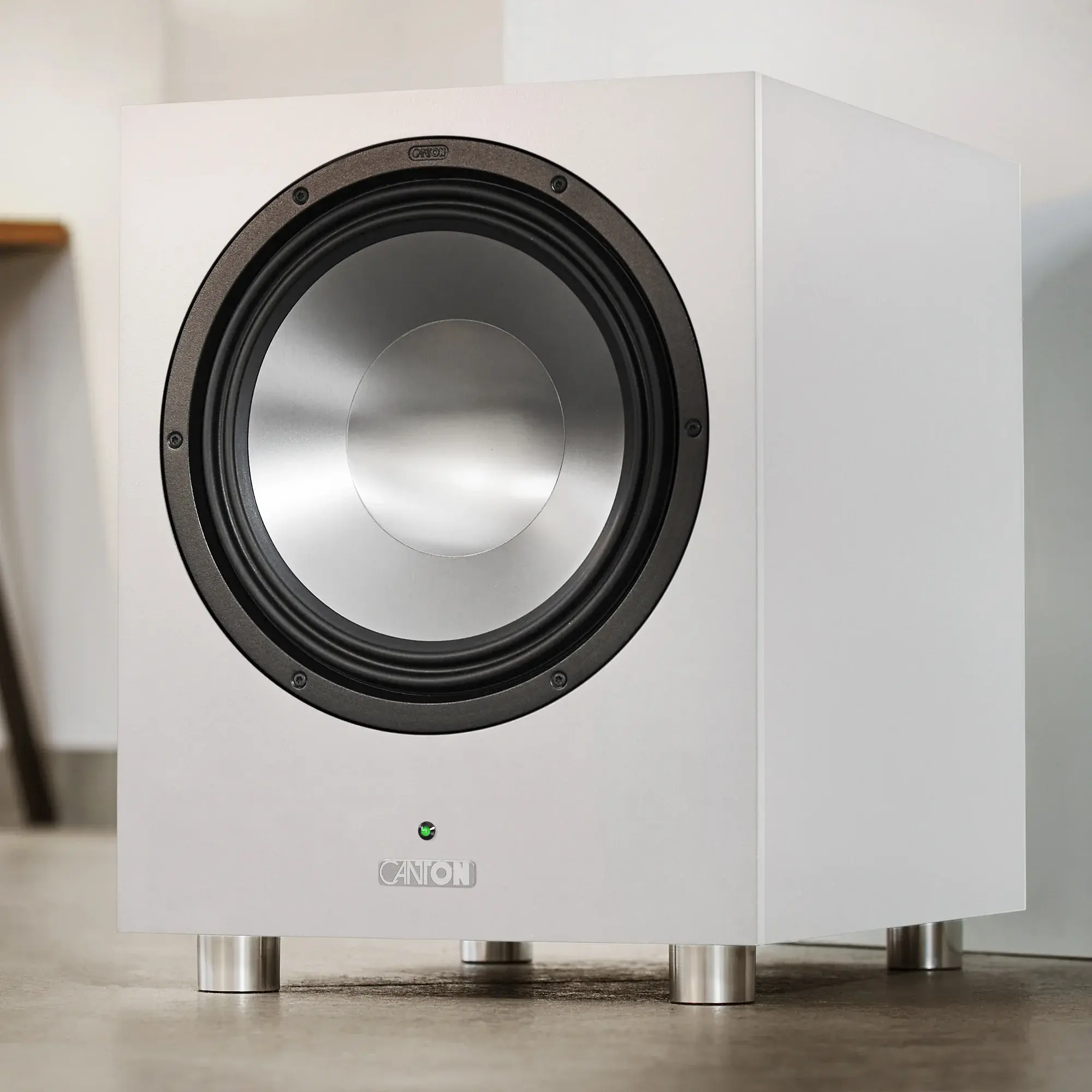 Активный сабвуфер Power Sub 12 от Canton работает по принципу фазоинвертора с пассивной мембраной, направленной вниз. Чтобы гарантировать точные механические характеристики, он оснащен приводом больших размеров, включающим технологию волнообразной обработки последнего поколения. Многослойный волновой объемный звук обеспечивает гораздо больший ход по сравнению с обычным объемным звуком и снижает искажения звука.