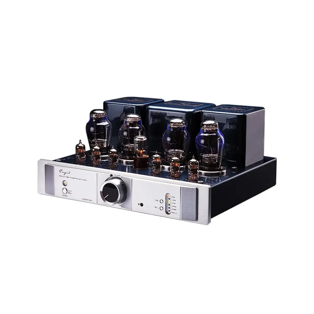 Cayin A-300P MK2 - ламповый интегральный усилитель. Конструкция усилителя обеспечивает кратчайший путь сигнала, а само устройство собрано полностью вручную.