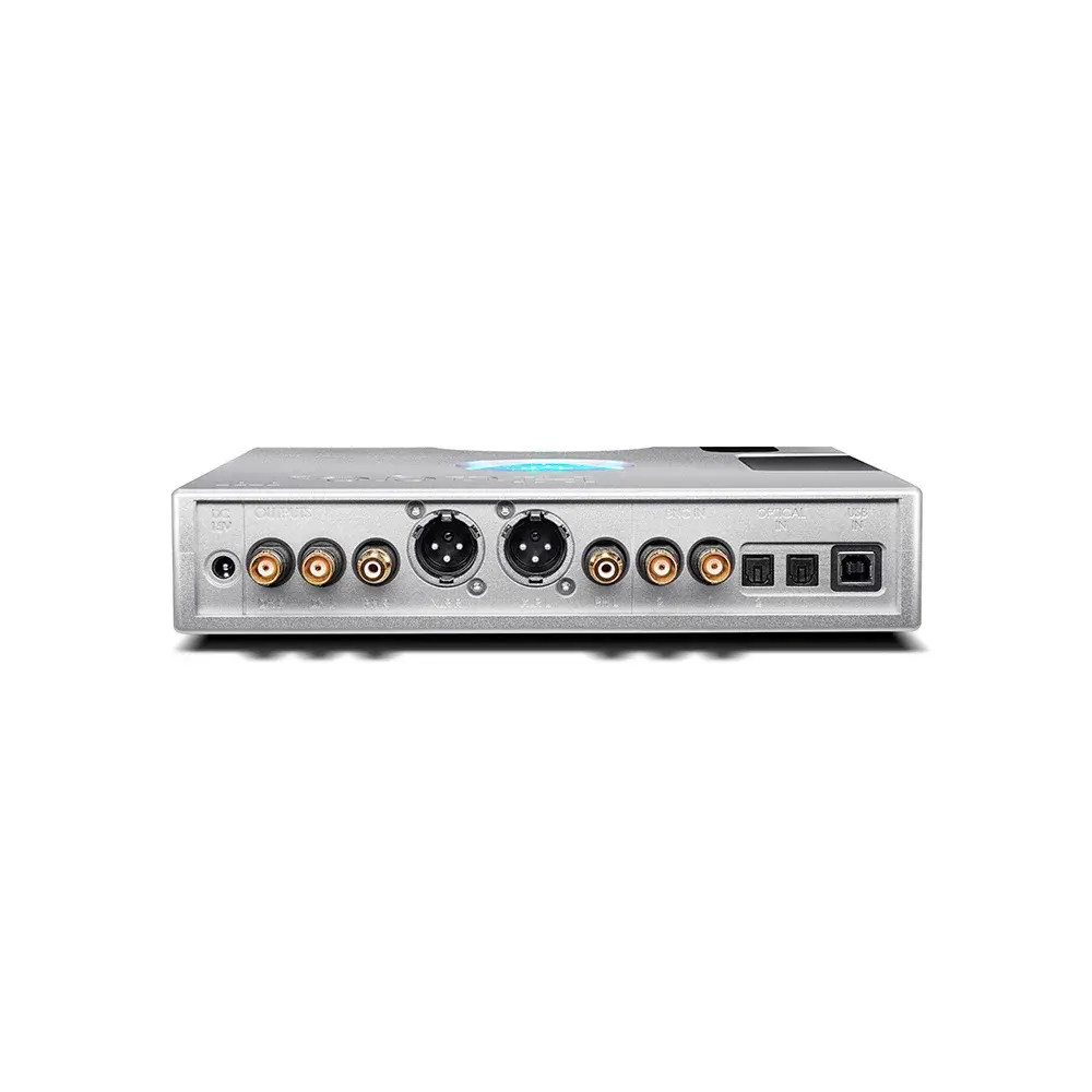 В блоке питания модели задействованы шесть суперконденсаторов, гарантирующих максимальный выходной ток в 5 А/9,3 В. При наличии соответствующего кабеля такой усилитель может раскачать даже небольшие акустические системы. Модель оснащается четырьмя фильтрами, каждый из которых можно выбрать вручную для получения различных оттенков саунда. Применяется функция Crossfeed (три режима работы на выбор), задача которой состоит в микшировании каналов и в изменении масштаба сцены, что актуально, например, при прослушивании в наушниках с целью имитации глубокой и объемной звуковой подачи, характерной для акустических систем.