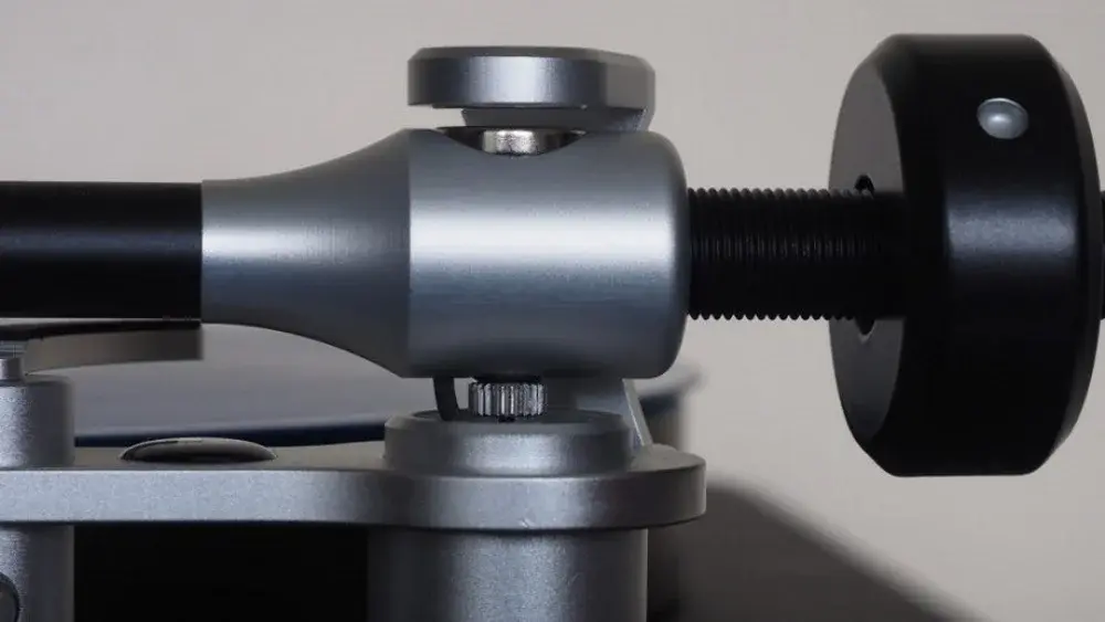 Малошумный электромотор постоянного тока передает крутящий момент на ступицу диска с помощью широкого пассика. Сам опорный диск толщиной в 30 мм выполнен из жесткого и прочного полиформальдегида (POM). Полированный шпиндель, изготовленный из закаленной стали, вращается в бронзовой втулке подшипника, которая прошла специальную обработку, использующую процесс синтерирования (спекания). Выбор между скоростями вращения осуществляется с помощью переключателя, который крепится в левом нижнем углу стола проигрывателя. Доступны 78, 45 и 33,3 об/мин. Блок питания представляет собой отдельный внешний адаптер. Имеется также заземляющий шнур и встроенный кабель для подключения к усилителю.
