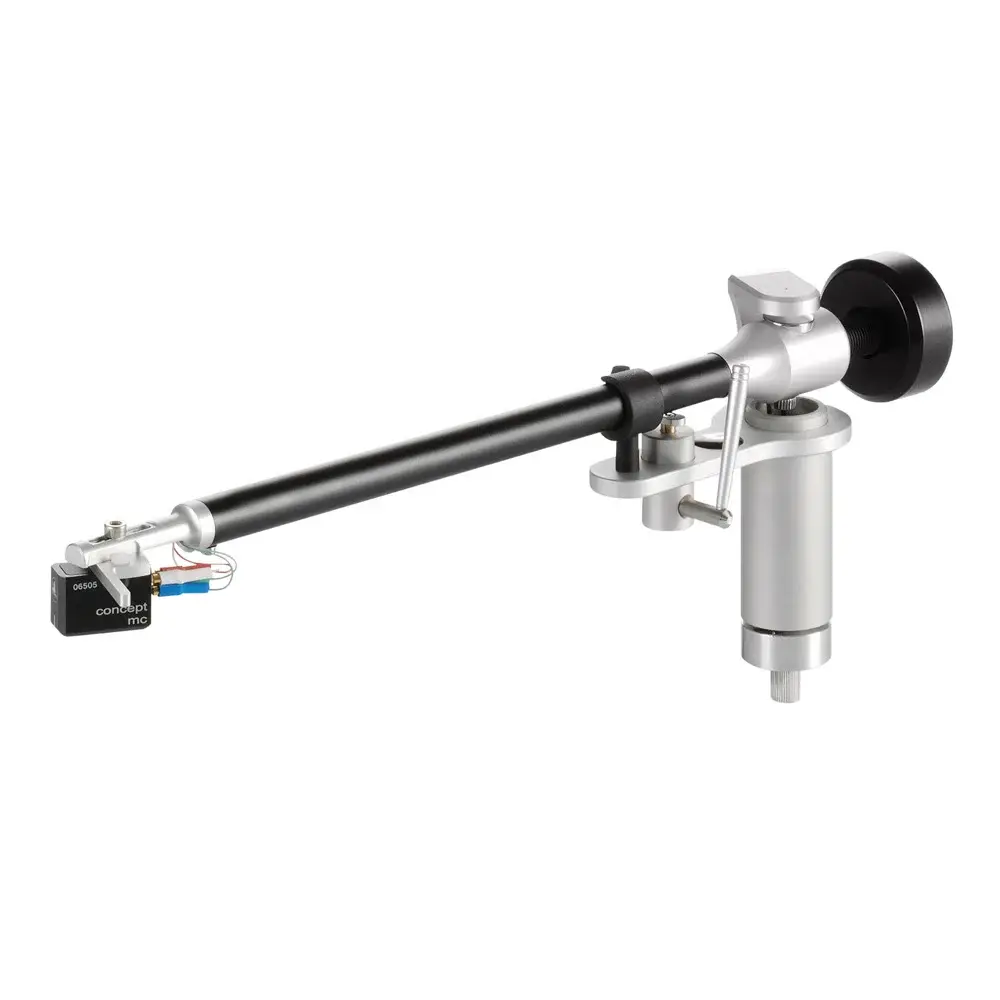 Компания обращает внимание на то, что примененный в этой модели тонарм Satisfy Kardan посажен на специальный магнитный подшипник, практически полностью исключающий трение. Расстояние между осью и иглой равно 222 мм, а эффективная длина тонарма составляет 239,3 мм. Модель комплектуется прецизионным аудиофильским картриджем с подвижным магнитом из бескислородной меди, который весит 8.4 грамма. Форма иглы соответствует типу Micro Line (эллипсовидная). При желании головку звукоснимателя можно заменить, правда, все настройки придется делать заново. Тоже относится и к тонарму. Все это свидетельствует о том, что при необходимости можно легко провести апгрейд Concept MM.
