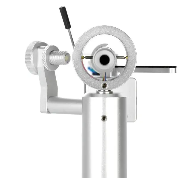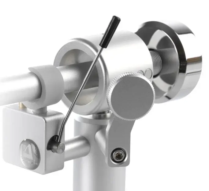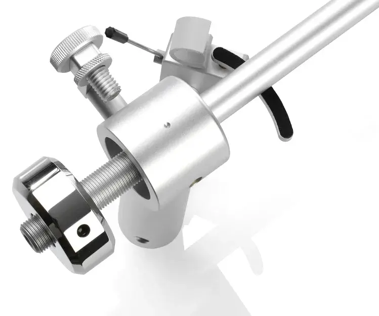 Также в модели Clearaudio Satisfy Cardan имеется точная регулировка прижимной силы с помощью навинчивающегося грузика, а также предусмотрена настройка VTA. Она представляет собой специальную опору с двумя регулировочными винтами, с помощью которой можно настроить требуемую высоту тонарма.