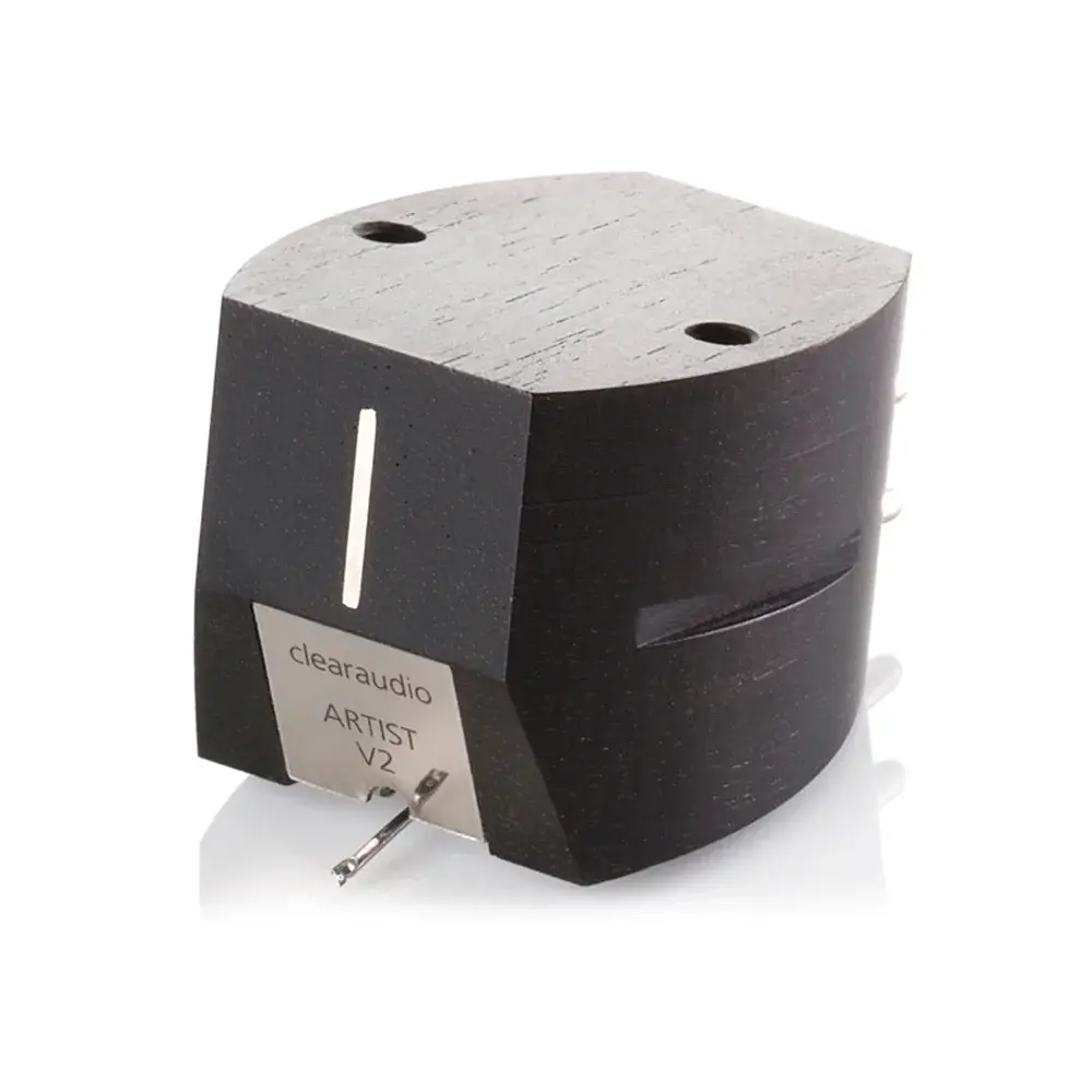 Звукосниматель оснащен эллиптической алмазной иглой с двойной полировкой, смонтированной на легком и жестком алюминиевом держателе. Головка отличается очень точным трекингом, а по своим механическим параметрам хорошо подходит для установки на большинство тонармов популярных моделей. Корпус Clearaudio Artist V2 изготовлен из черного дерева, которое по своим механическим и акустическим характеристикам превосходит большинство современных полимеров. Такой корпус при относительно небольшом весе эффективно противостоит резонансам, способным окрасить звук, и служит надежной опорой для конструкции головки. Кроме того, корпус из черного дерева с боковыми проточками и металлической накладкой с логотипом фирмы придает Clearaudio Artist V2 шикарный внешний вид, а сам звукосниматель выглядит значительно «дороже» своей стоимости.