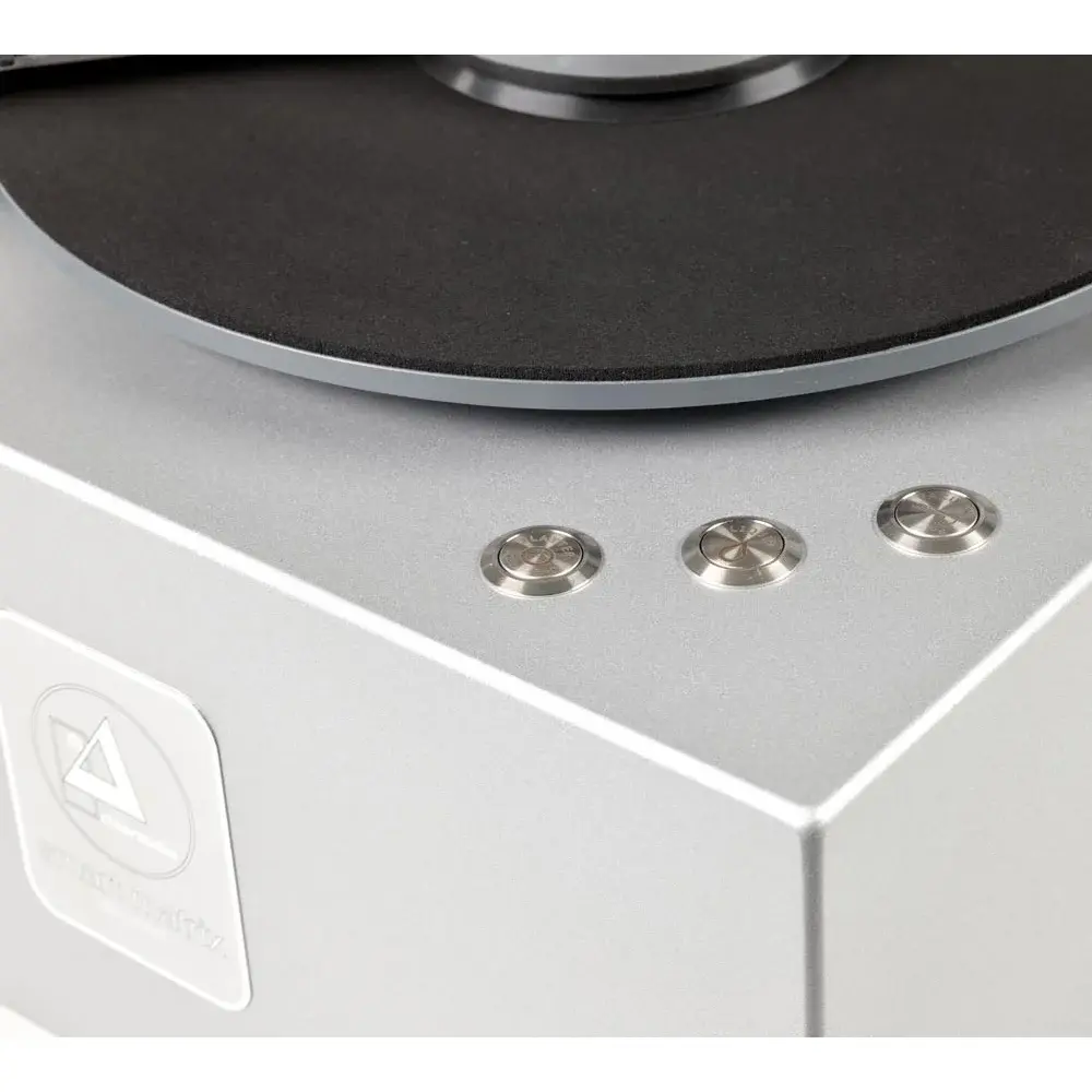 На верхней «палубе» находятся три кнопки, одна из которых изменяет направление вращения диска, вторая служит для подачи/дозировки жидкости, а третья активирует насос. Для снятия статического напряжения компания Clearaudio рекомендует использовать фирменную щетку со щетиной из углеволокна.