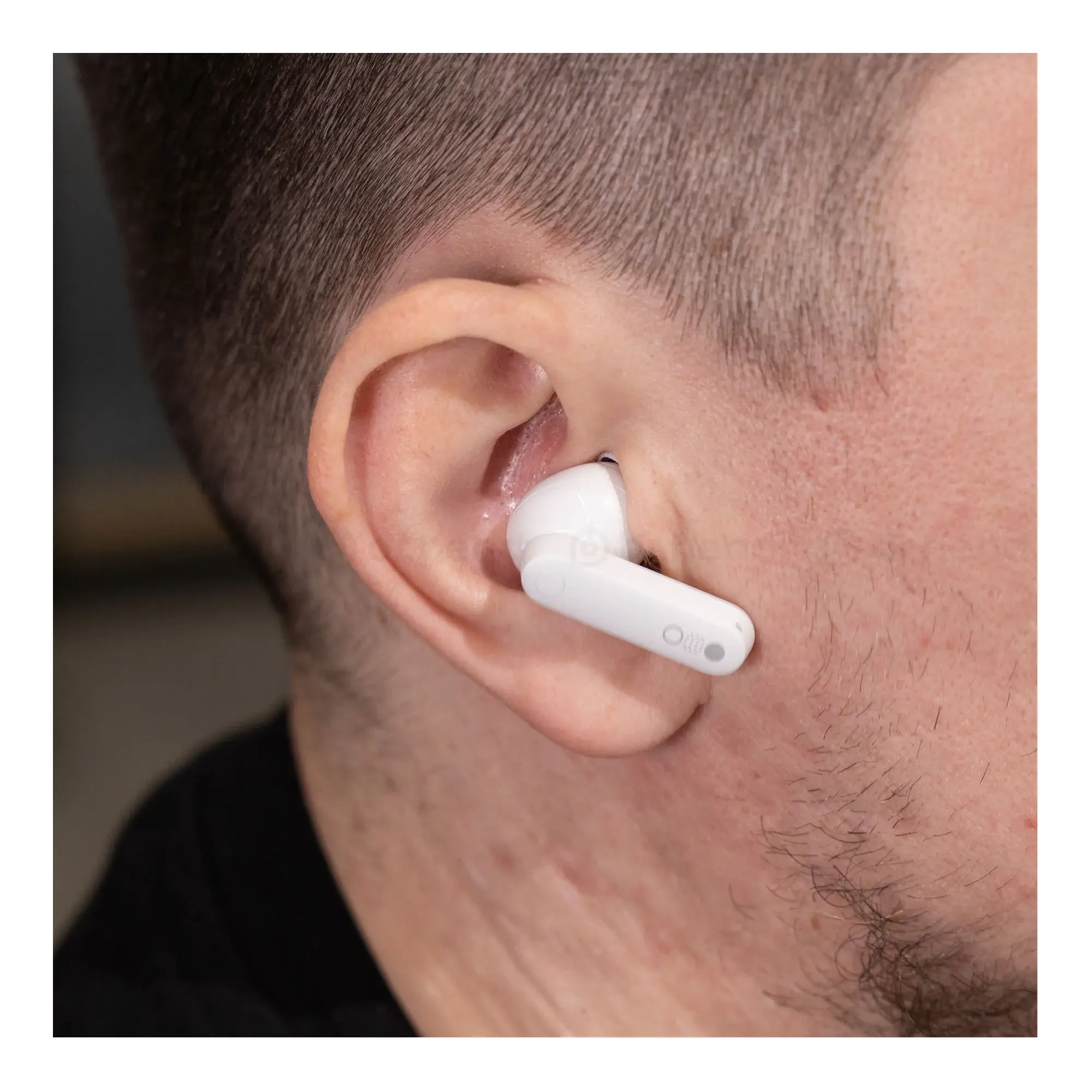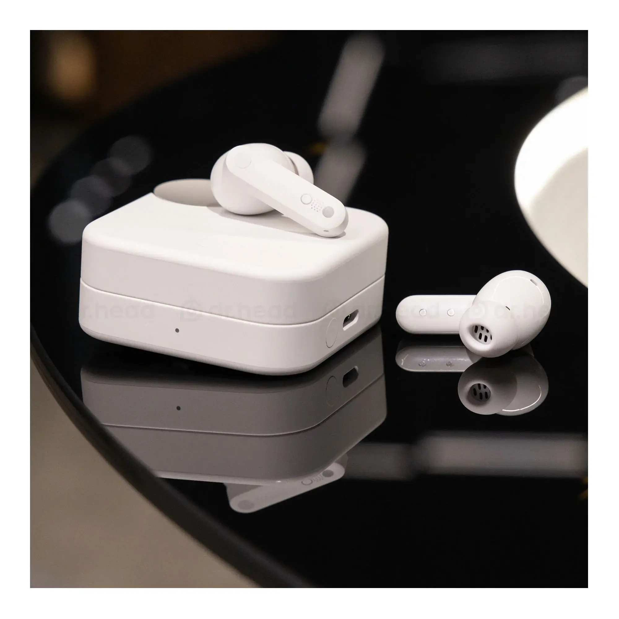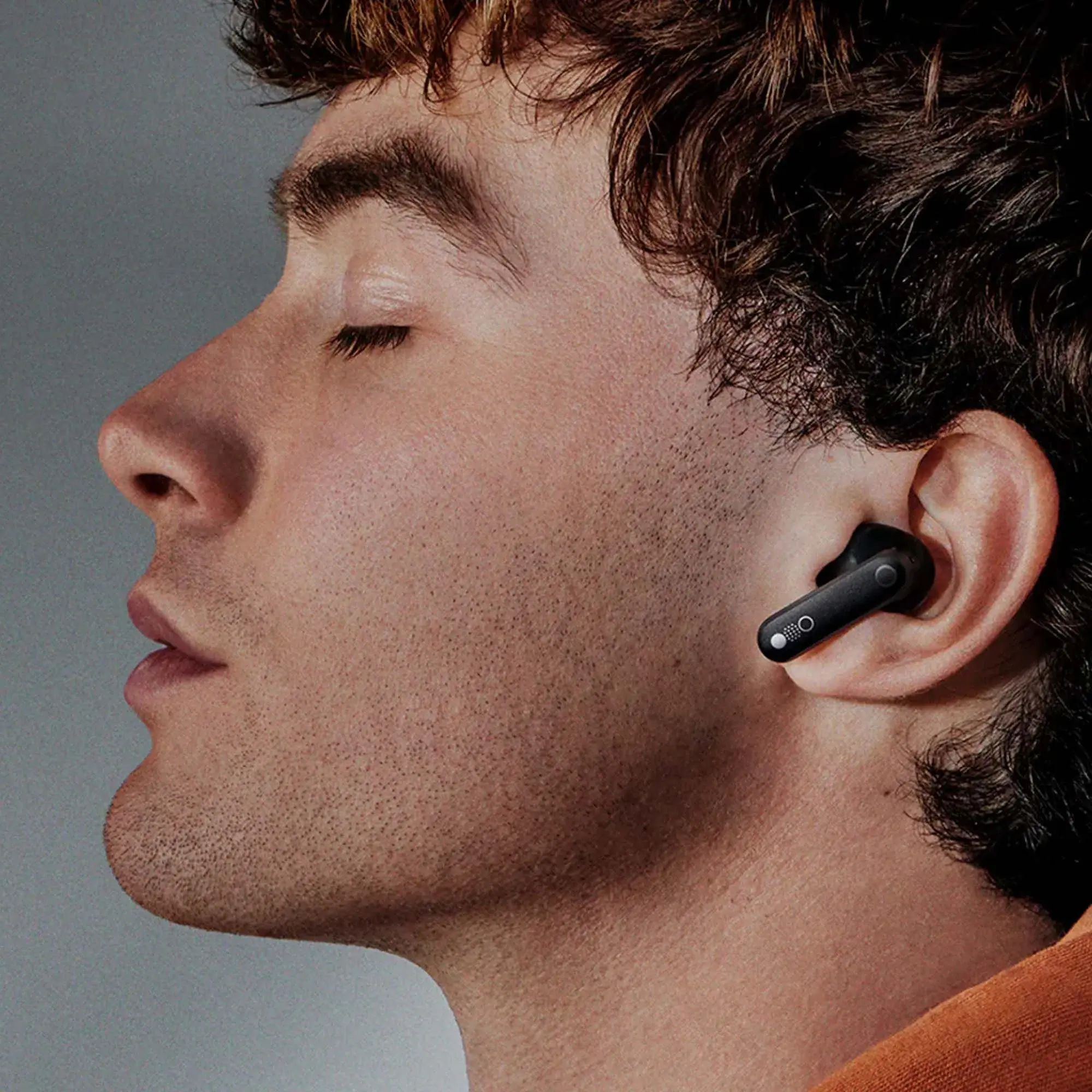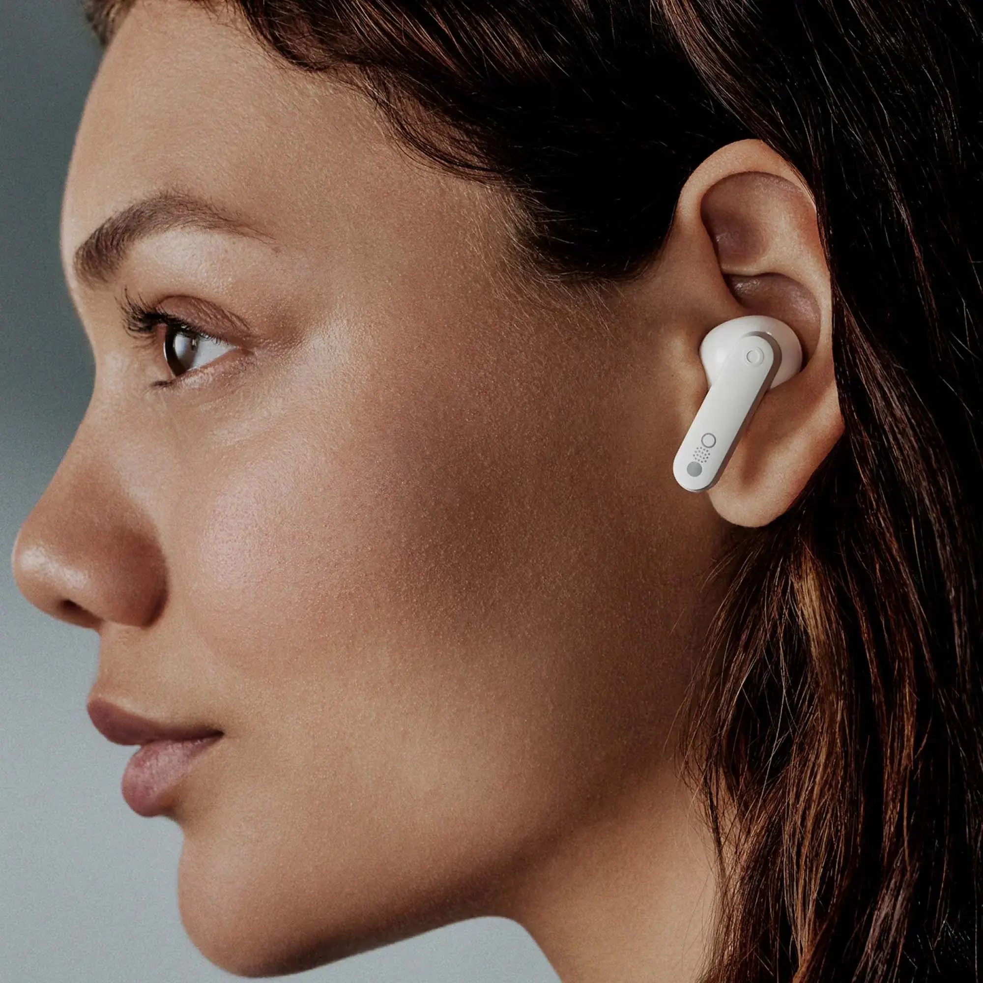 Внешняя сторона наушников выполнена из того же матового пластика, а все остальное глянцевое. Имеются декоративные пиктограммы и выступающий глянцевый круг на верхней части ножек. Наушники подключаются к источникам сигнала через Bluetooth 5.3 с поддержкой Google Fast Pair. За передачу голоса отвечают по два микрофона на наушник и алгоритмы шумоподавления. Внешний HD-микрофон распознает окружающий шум, затем внутренний процессор генерирует обратные звуковые волны, которые излучаются через динамики для его приглушения. Также поддерживается режим прозрачности.