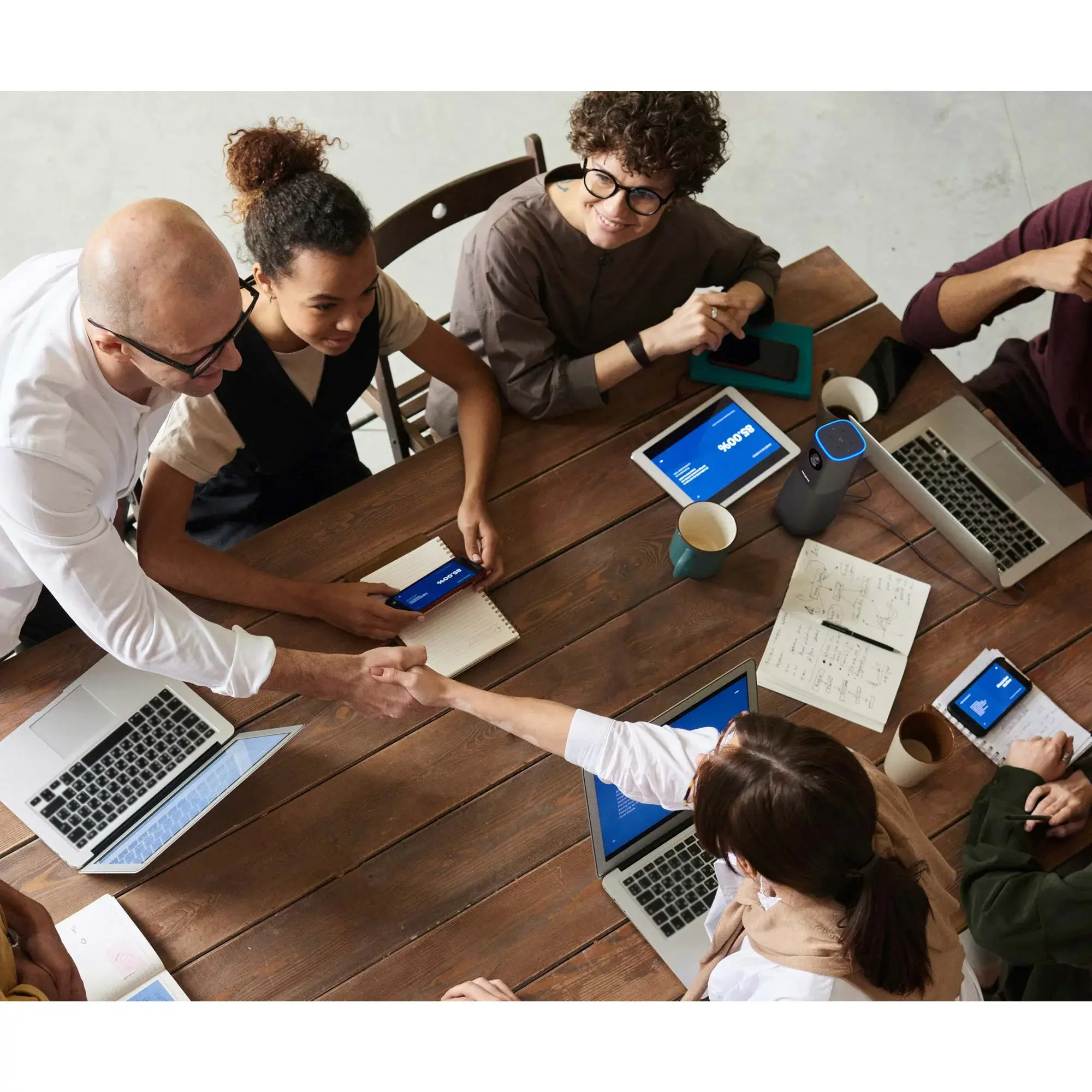 При проведении презентаций в профессиональной обстановке или при создании творческого контента можно панорамировать, наклонять или изменять масштаб без необходимости физического перемещения спикерфона.