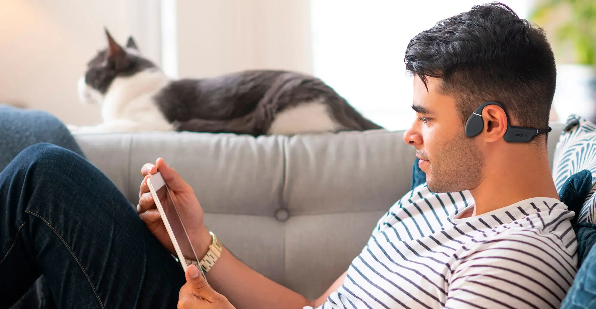 Creative Outlier Free использует технологию костной проводимости для передачи звуков непосредственно на кости внутреннего уха посредством вибрации через скулы, которые передают звуковые волны, позволяя вам ощутить высококачественную акустику. Благодаря технологии костной проводимости уши остаются открытыми, что позволяет вам всегда быть в курсе того, что вас окружает.