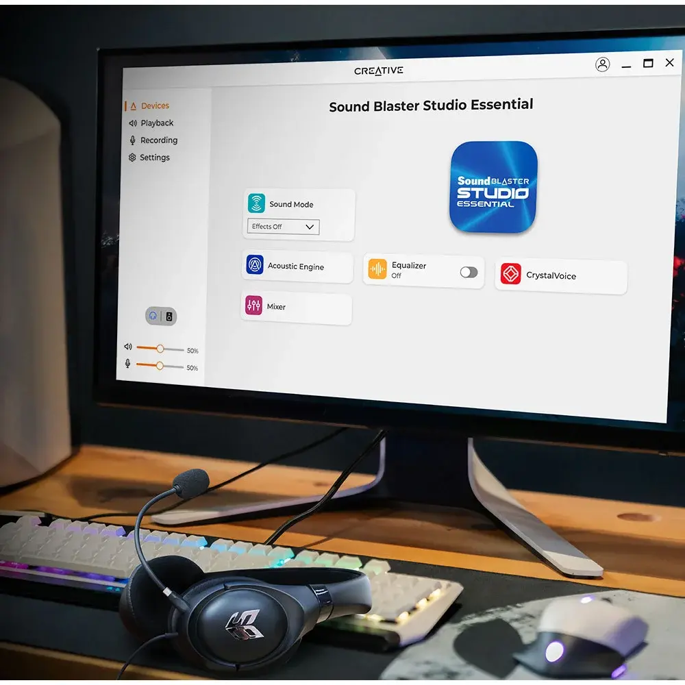 Наслаждайтесь захватывающим объемным звуком 7.1 в своих играх, активировав программное обеспечение Sound Blaster Studio Essential! Загружаемое программное обеспечение также предоставляет вам больше возможностей настройки того, как вы хотите слушать, от предустановок эквалайзера, таких как игры, фильмы и музыка, до дальнейшей настройки диапазона эквалайзера по вашему вкусу. (Sound Blaster Studio Essential доступен только на ПК с ОС Windows).