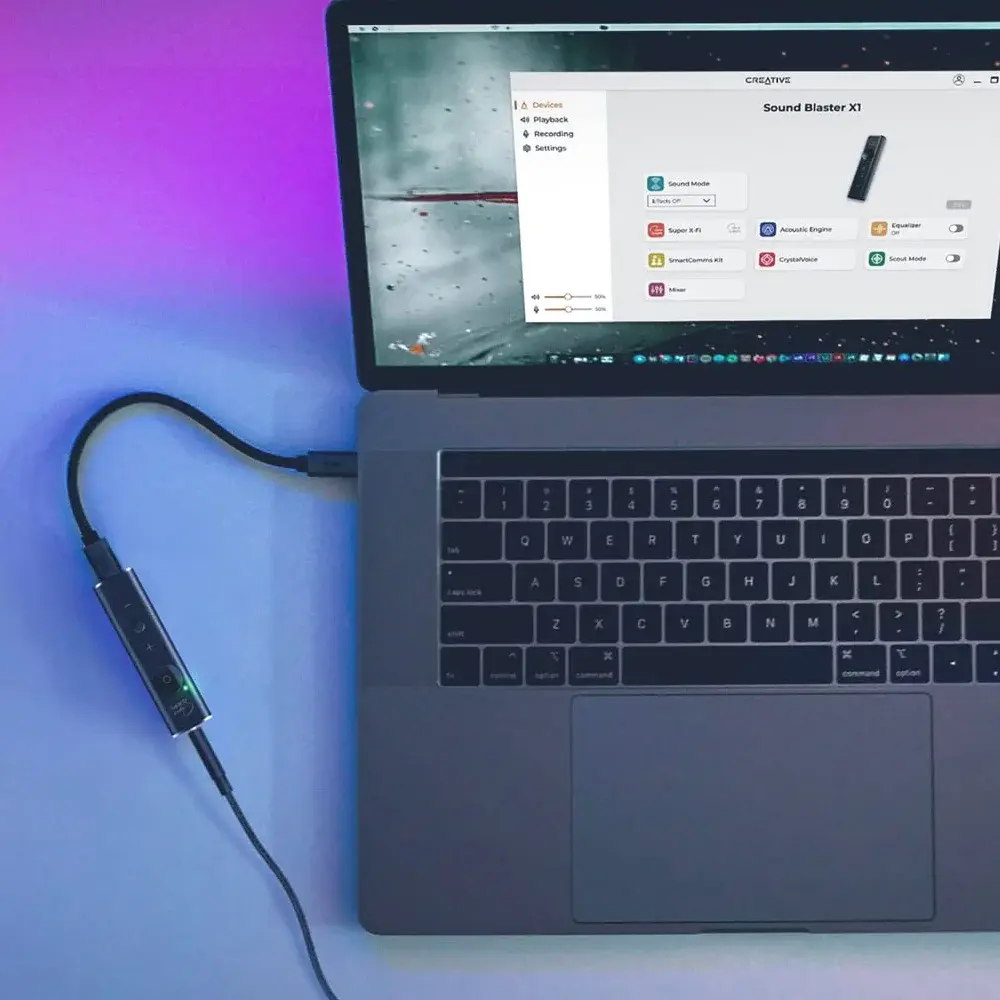 Подключите X1 напрямую через USB-C к вашему ПК, Mac, консолям PlayStation или Nintendo Switch и он без особых усилий улучшит качество звука вашего устройства. Он также оснащен кнопками воспроизведения и отключения микрофона, а также набором SmartComms через приложение Creative на ПК и Mac, что позволяет без проблем общаться онлайн во время встреч или даже внутриигровых чатов.