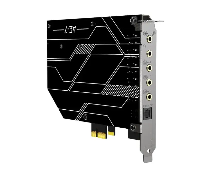 Независимо от того, куда выводится сигнал — на наушники или на динамики — AE-7 сумеет превратить стерео- или многоканальные источники в иммерсивный звук качества кинотеатра. Звуковая карта поддерживает дискретное звучание 5.1 для динамиков и виртуальное объемное звучание 7.1 для динамиков и наушников. При этом вы можете легко переключаться между ними. А поддержка технологии Dolby Digital Live и кодирования DTS Connect открывает еще большие возможности вывода звука на внешние аудиоустройства.