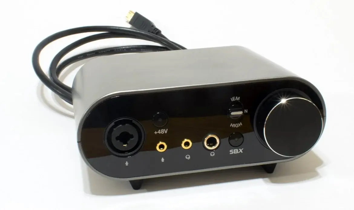 Модуль регулировки звука позволяет вам быстро изменить настройки аудио. Большая многофункциональная ручка регулировки позволяет контролировать громкость и переключаться между наушниками и динамиками. Она придется по вкусу тем пользователям, которые используют различные типы наушников, так как позволяет переключаться между обычными наушниками, наушниками с высоким импедансом и внутриканальными наушниками. Кнопка SBX позволяет пользователям включать и выключать обработку звука Sound Blaster, а с помощью большого светодиодного дисплея удобно считывать громкость наушников и динамиков.
