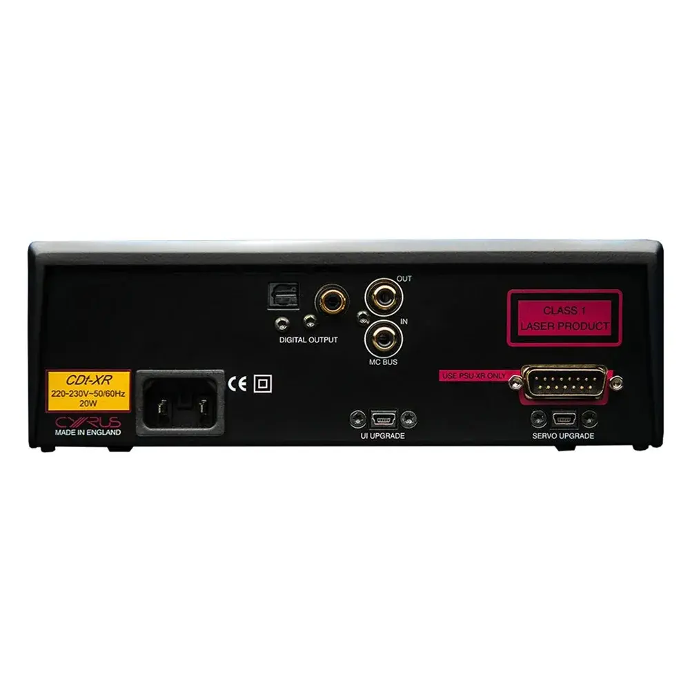 CDt-XR оснащен разъемом для подключения нового блока питания PSU-XR. Тридцать лет назад компания Cyrus открыла новые горизонты, представив PSX-R - первый в истории регулируемый блок питания, который автоматически адаптировался к требованиям к питанию любого подключенного устройства. Блок питания PSU-XR поднимает планку, благодаря использованию не менее пяти независимых регулируемых источников питания в одном корпусе. Для CDt-XR используются четыре блока питания PSU-XR. Одна пара обеспечивает сверхбыстрое питание аналоговых аудиосхем, другая - высокоточные двигатели, а третья просто обеспечивает сверхстабильное питание цифровой основной тактовой схемы PLL, сводя к минимуму любые колебания, связанные с источником питания.