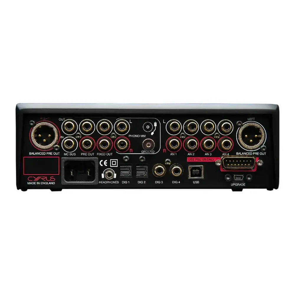 Pre-XR оснащен разъемом для подключения нового блока питания PSU-XR. Тридцать лет назад компания Cyrus открыла новые горизонты, представив PSX - первый в мире регулируемый источник питания, который автоматически адаптировался к требованиям к питанию любого подключенного устройства. Блок питания PSU-XR поднимает планку за счет использования не менее пяти независимых регулируемых источников питания в одном корпусе. В случае с Pre-XR блок питания PSU-XR берет на себя питание аналоговых каскадов предусилителя.
