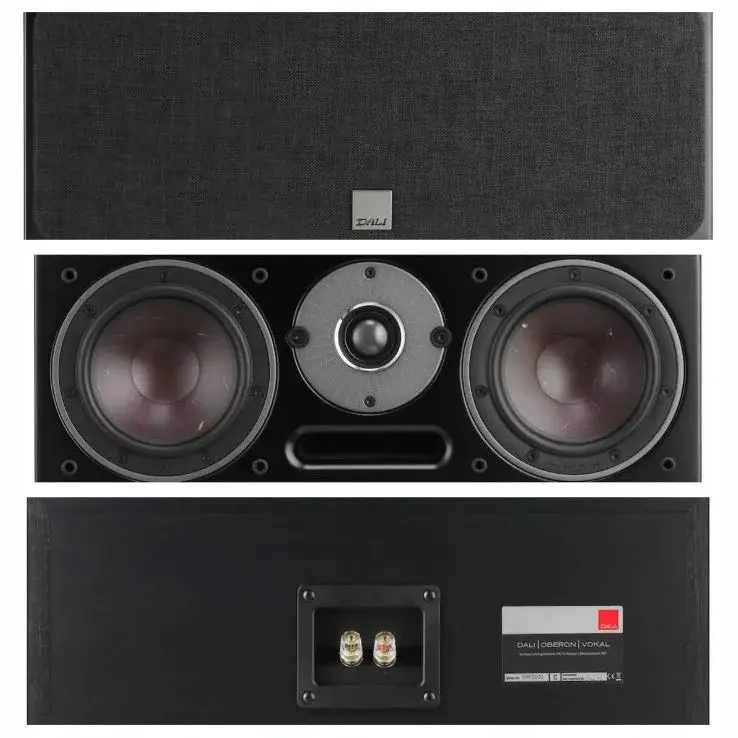 DALI Oberon Vokal имеет классическую конфигурацию для моделей данного класса. На ее передней панели установлены два басовых динамика диаметром 5,25 дюйма, между которыми смонтирован купольный твитер. Низкочастотники оснащены диффузорами из древесно-бумажной пульпы, закрепленными на эластичном резиновом подвесе. В магнитной системе низкочастотников применена запатентованная технология SMC, которая позволяет повысить эффективность ее работы и качество звучания.