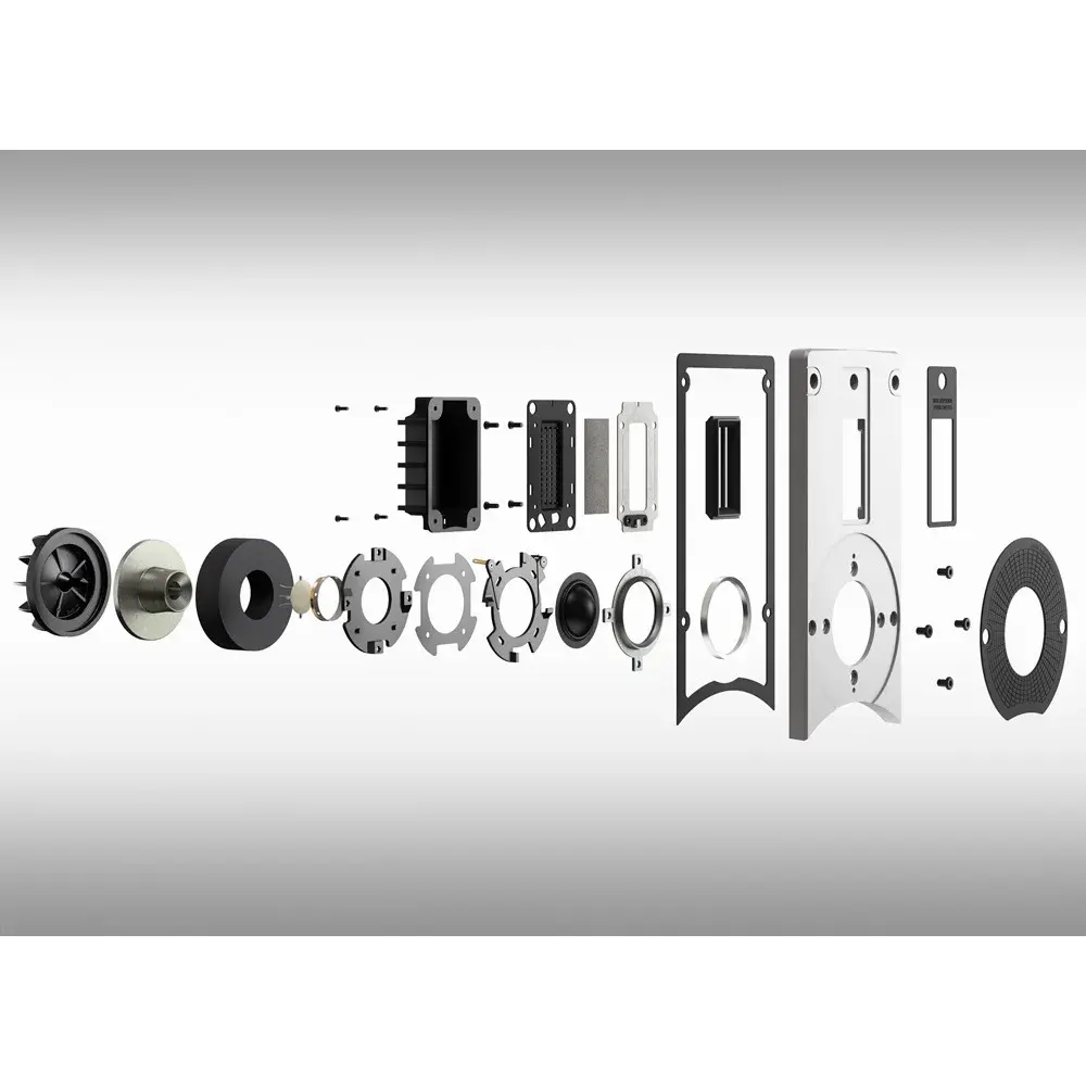 Полюса магнитов целиком выполнены из SMC (мягкий магнитный компаунд), окруженного перфорированным медным колпачком. Благодаря крупному кольцевому ферритовому магниту эффект от применения SMC сфокусирован и максимизирован, а искажения невероятно малы.