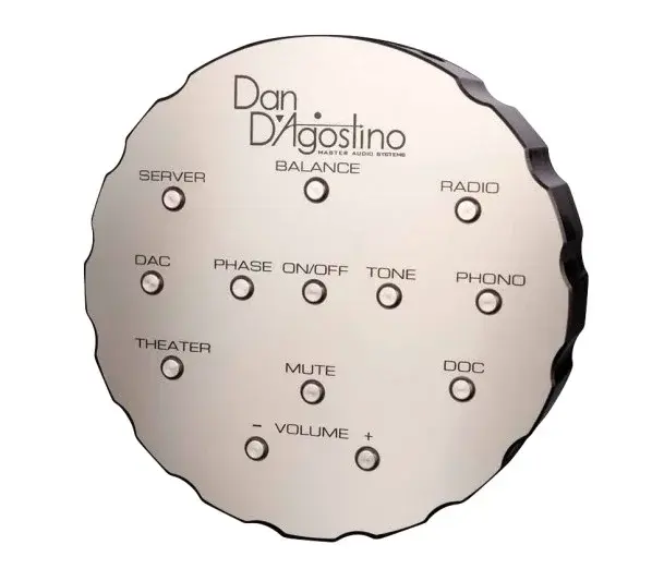 Передняя панель имеет тот же внешний вид и функциональность, что и в предусилитель Momentum: в центре располагается циферблат с подсветкой и стрелками индикаторов, вдохновленными классическим дизайном швейцарских часов. Также здесь есть 8 крупных кнопок: 6 для выбора источника и соответствующего канала, кнопка отключения фильтров тембра и еще одна для отключения самого устройства.