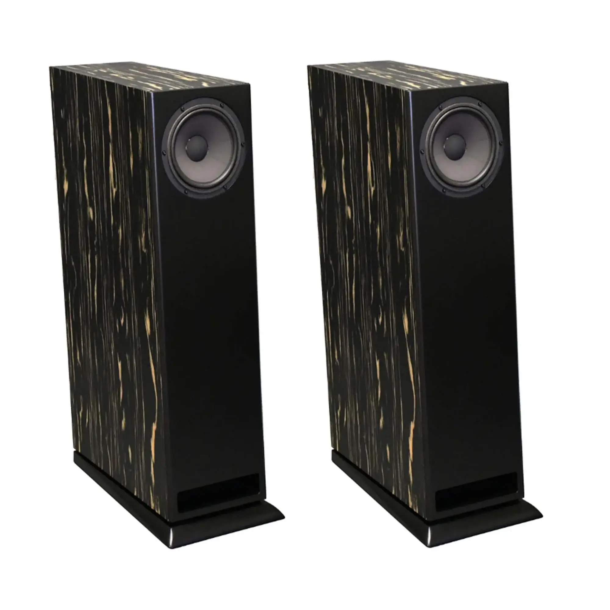 Колонки изготовлены в корпусах из толстого ДВП, усиленных специальными стяжками. Динамик нагружен на фазоинвертор, щелевое выходное отверстие которого выведено в самый низ передней панели. Это обеспечивает эффективное использование всего внутреннего объема корпуса и в то же время позволяет разместить акустические системы в любом месте комнаты прослушивания. Колонки установлены на массивном основании, а их внешняя отделка выполнена шпоном натурального дерева.