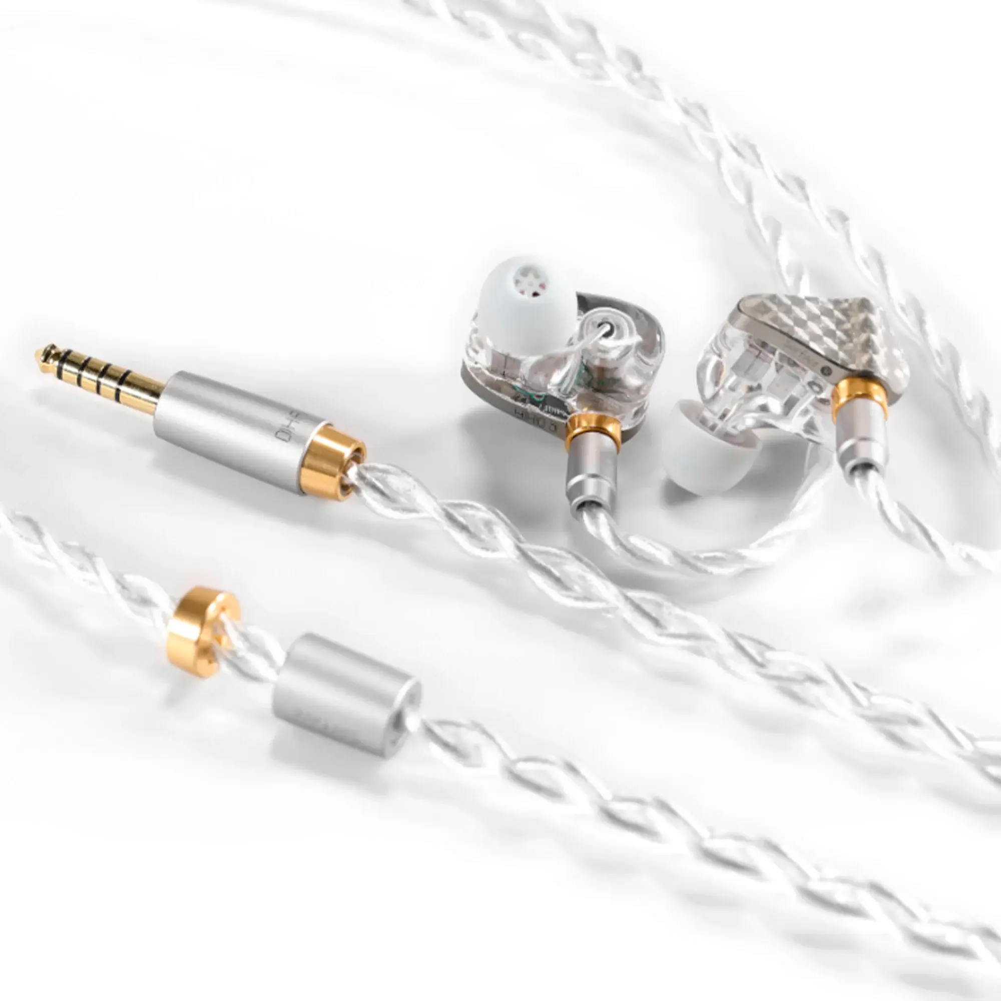 В комплект входит кабель ddHiFi BC120S с проводниками из бескислородного меди высокой степени очистки (OFC), покрытой 3 микронами серебра, что способствует чёткой передаче звука по всему частотному диапазону. Особая структура экранирования защищает сигнал от внешних воздействий, при этом обеспечивая высокую гибкость провода. Внешняя прозрачная оболочка из ПВХ в сочетании с фурнитурой из аллюминиевого сплава аэрокосмического класса, одновременно обеспечивают высокую прочность, долговечность и стильный внешний вид кабеля.