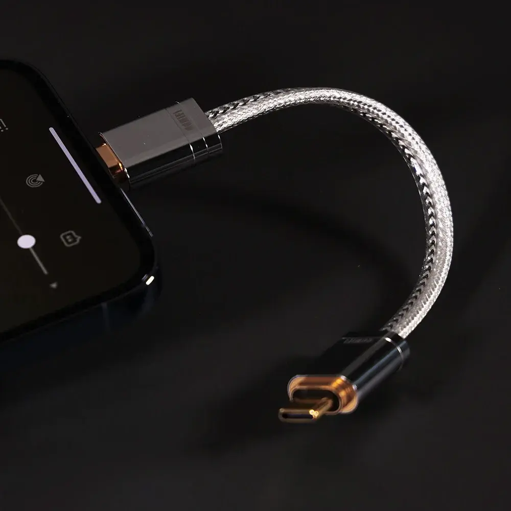ddHiFi MFi09S - OTG кабель с разъемами USB-C - Lightning обладает заметным улучшением качества звука. Обычно вы используете ваш телефон или компьютер в качестве музыкального проигрывателя для подачи сигнала на ЦАП и усилитель через USB-кабель для передачи данных. Если напряжение низкое, а ток невелик, роль кабеля станет менее важной.