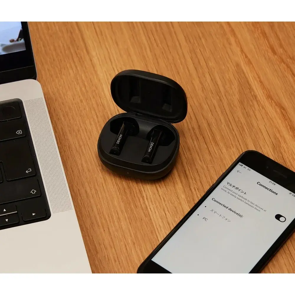Благодаря многоточечному подключению вы можете управлять звуком с двух устройств одновременно, переключаясь между вызовами на ноутбуке и списками смартфоне без сбоев.