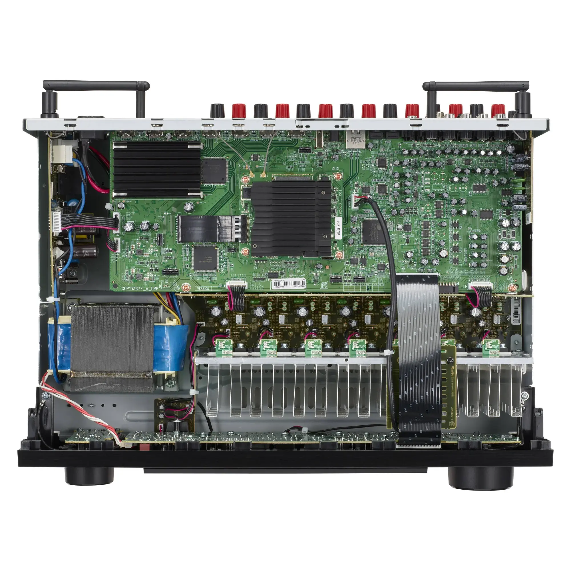 Denon AVR-X1800H оснащен шестью HDMI-входами и выходом с поддержкой новейшего стандарта HDCP2.3. Аппарат не только может осуществлять коммутацию видео с параметрами 8K/60 Гц, Dolby Vision, HDR10 и HGL, но также поддерживает технологию eARC, которая позволяет передавать звук в 3D-форматах. Также благодаря режиму Low Latency AV-ресивер можно использовать совместно с игровыми приставками.