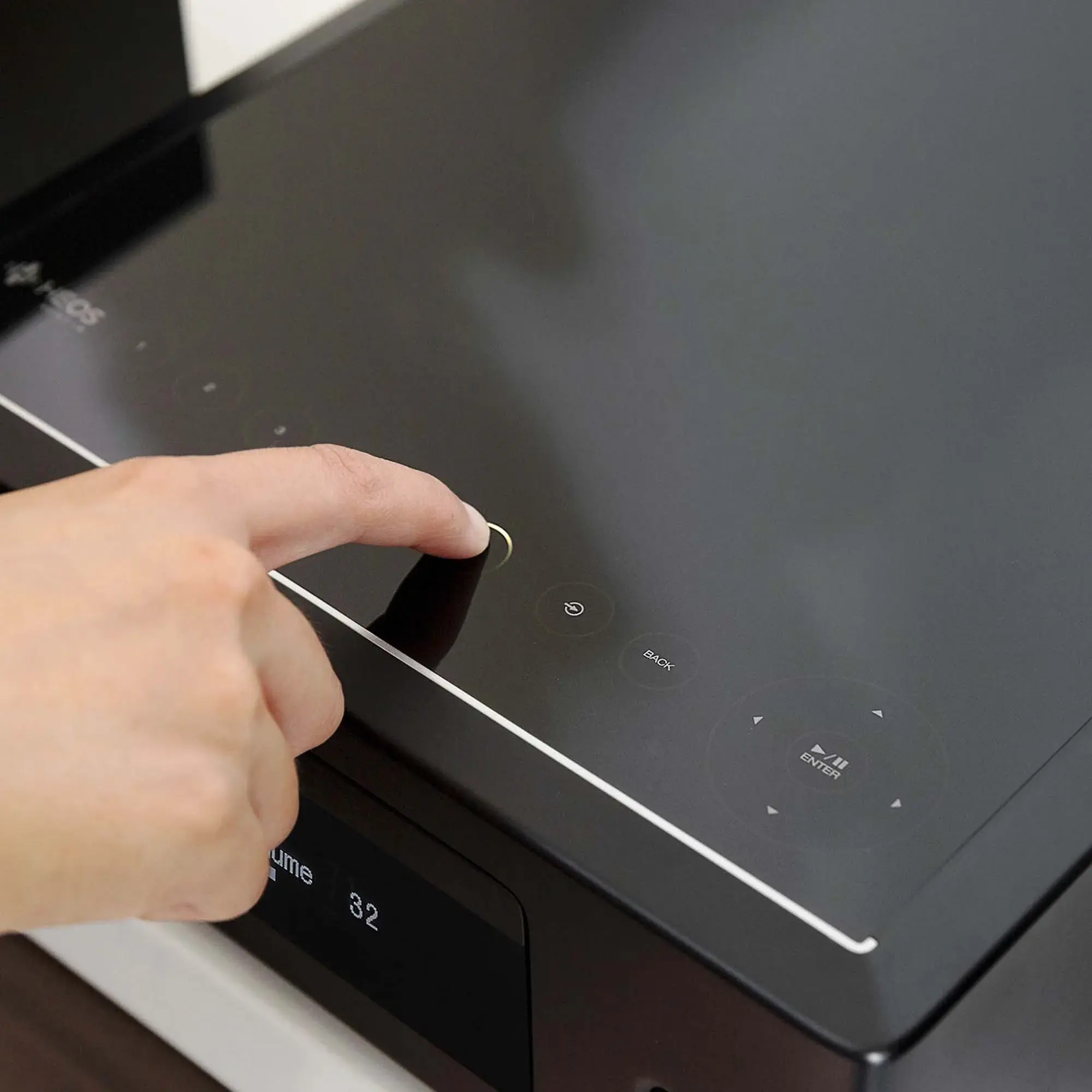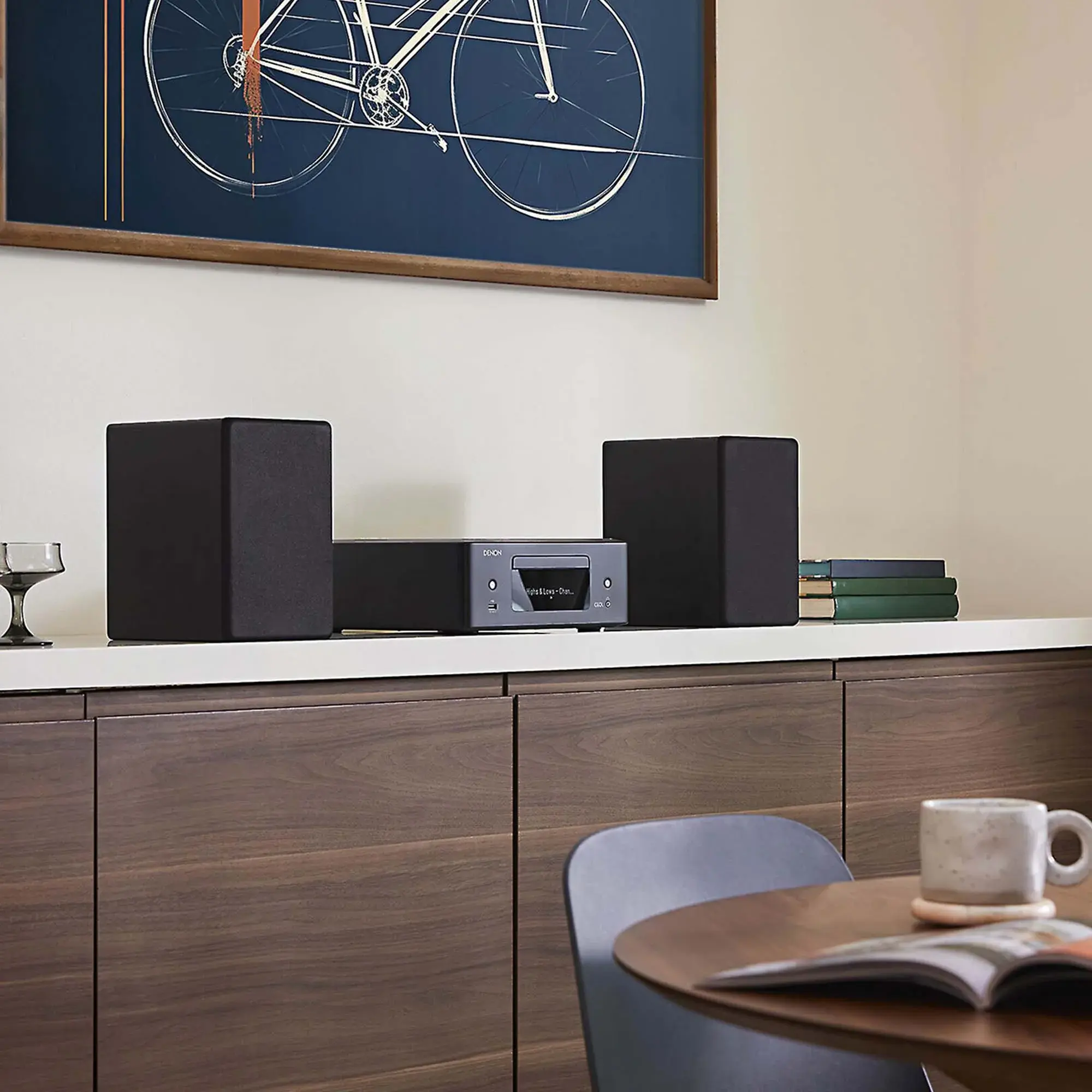 Компактная стереосистема Denon RCD-N12DAB обладает широкими функциональными возможностями, и в то же время очень проста в использовании. Передняя панель центрального блока оформлена в минималистском стиле, и большую часть ее пространства занимает крупный, легко читаемый дисплей. Основные органы управления системой – сенсорные кнопки - находятся на верхней панели, также Denon RCD-N12DAB комплектуется пультом ДУ. Однако наиболее удобный способ управления системой – с помощью фирменного мобильного приложения. Кроме того, в Denon RCD-N12DAB предусмотрено голосовое управление с помощью популярных приложений - Amazon Alexa, Google Assist и Apple Siri. Особенности: высококонтрастный 3-строчный OELD-дисплей; CD-плеер с быстрой загрузкой диска и практически бесшумно работающим механизмом; качественный FM/AM тюнер; беспроводная фирменная система мультирум HEOS; поддерживается доступ к таким онлайн-сервисам, как Spotify Connect, Tidal, Deezer, Sound Cloud, Napster, TuneIn; предусмотрено голосовое управление с помощью популярных приложений - Amazon Alexa, Google Assist и Apple Siri; в лицевую панель встроен USB-порт, поддерживающий зарядку iPod/iPhone даже в дежурном режиме, и мини-джек для наушников. Центр фасада Denon RCD-N12DAB занимает лоток дискового транспорта, под которым расположен высококонтрастный 3-строчный OELD-дисплей. На лицевой панели находится кнопка питания/standby с индикатором режимов работы и клавиша открытия лотка. Остальные элементы управления (селектор источника, регулятор громкости, джойстик для навигации по меню и управления воспроизведением) вынесены на верхнюю акриловую панель. Там же имеется метка для сопряжения с Bluetooth-устройствами с NFC. В лицевую панель встроен USB-порт, поддерживающий зарядку iPod/iPhone даже в дежурном режиме, и мини-джек для наушников. Также Denon RCD-N12DAB комплектуется пультом ДУ. Denon RCD N12DAB оснащен большим количеством встроенных источников сигнала. Здесь имеются CD-плеер с быстрой загрузкой диска и практически бесшумно работающим механизмом, а также очень качественный FM/AM тюнер. Однако это является лишь частью списка возможностей данной модели, большинство из которых связаны с сетевым функционалом Denon RCD N12DAB. Здесь предусмотрено воспроизведение музыкальных файлов как с различных устройств (подключение к сети по Ethernet или Wi-Fi), а также пользование различными online-сервисами. Denon RCD N12DAB можно включить в беспроводную фирменную систему мультирум HEOS, а также соединять напрямую с устройствами, поддерживающими технологию AirPlay/AirPlay 2. Вход HDMI поддерживает возвратный аудиоканал ARC, что удобно при подключении к телевизору. На борту имеется MM-фонокорректор. Также в системе предусмотрен Bluetooth и имеется USB-вход для подключения портативных накопителей. Ресивер умеет работать с технологией HEOS, на базе которой можно создать беспроводную мультирум-инсталляцию, состоящую из компонентов с HEOS-поддержкой, среди которых можно выделить специализированные беспроводные акустические системы. При этом специальное приложение позволяет управлять ресивером, назначать воспроизведение определенного контента для разнообразных групп HEOS-устройств, проигрывать разные музыкальные треки в разных комнатах или синхронно транслировать музыку во всех помещениях одновременно. При этом поддерживается доступ к таким онлайн-сервисам, как Spotify Connect, Tidal, Deezer, Sound Cloud, Napster, TuneIn. В системе предусмотрена регулировка тембра в области НЧ и ВЧ, о