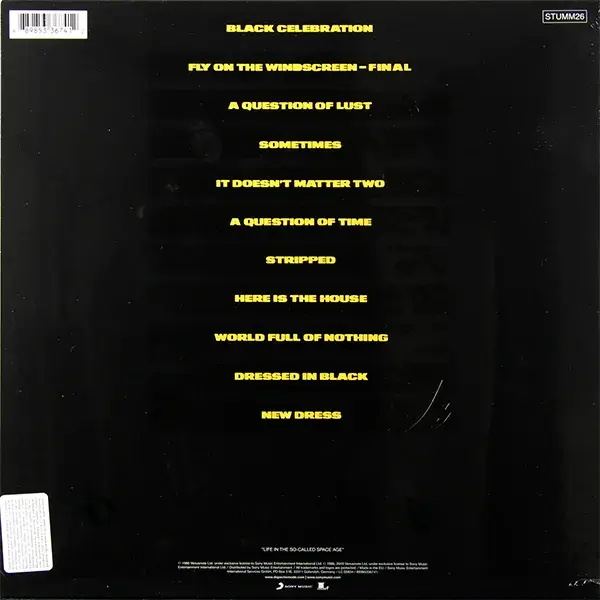 Black Celebration — пятый студийный альбом британской группы Depeche Mode, вышедший 17 марта 1986 года. Black Celebration записан в «тёмных» тонах, которые Алан Уайлдер также использовал в альбоме Construction Time Again. Диск отличается удачной комбинацией электроники и готического рока. Black Celebration — единственный альбом Depeche Mode, в котором на 5-и песнях («A Question of Lust», «Sometimes», «It Doesn’t Matter Two», «World Full of Nothing» и «Black Day») в роли главного вокалиста выступает Мартин Гор. Остальные песни были спеты Дэйвом Гааном. Песня «Fly on the Windscreen» была издана на стороне B сингла «It’s Called a Heart». Группа решила переработать эту песню (добавить новые эффекты и сделать её более стереофонической) и издать на «Финальной» версии этого альбома. Треклист 1. "Black Celebration" – 4:55 2. "Fly on the Windscreen - Final" – 5:18 3. "A Question of Lust" – 4:20 4. "Sometimes" – 1:53 5. "It Doesn't Matter Two" – 2:50 6. "A Question of Time" – 4:10 7. "Stripped" – 4:16 8. "Here Is the House" – 4:15 9. "World Full of Nothing" – 2:50 10. "Dressed in Black" – 2:32 11. "New Dress" – 3:42 Особенности Лейбл: Sony Страна: UK Формат: LP Количество треков: 11 Звучание: Stereo