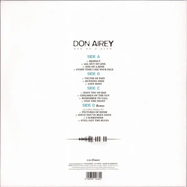 Британский музыкант Дон Эйри, наиболее известный как многолетний клавишник Deep Purple, выпустил свой новый сольный альбом. Пластинка получила название "One of a Kind" и вышла в свет 25 мая 2018 года.
