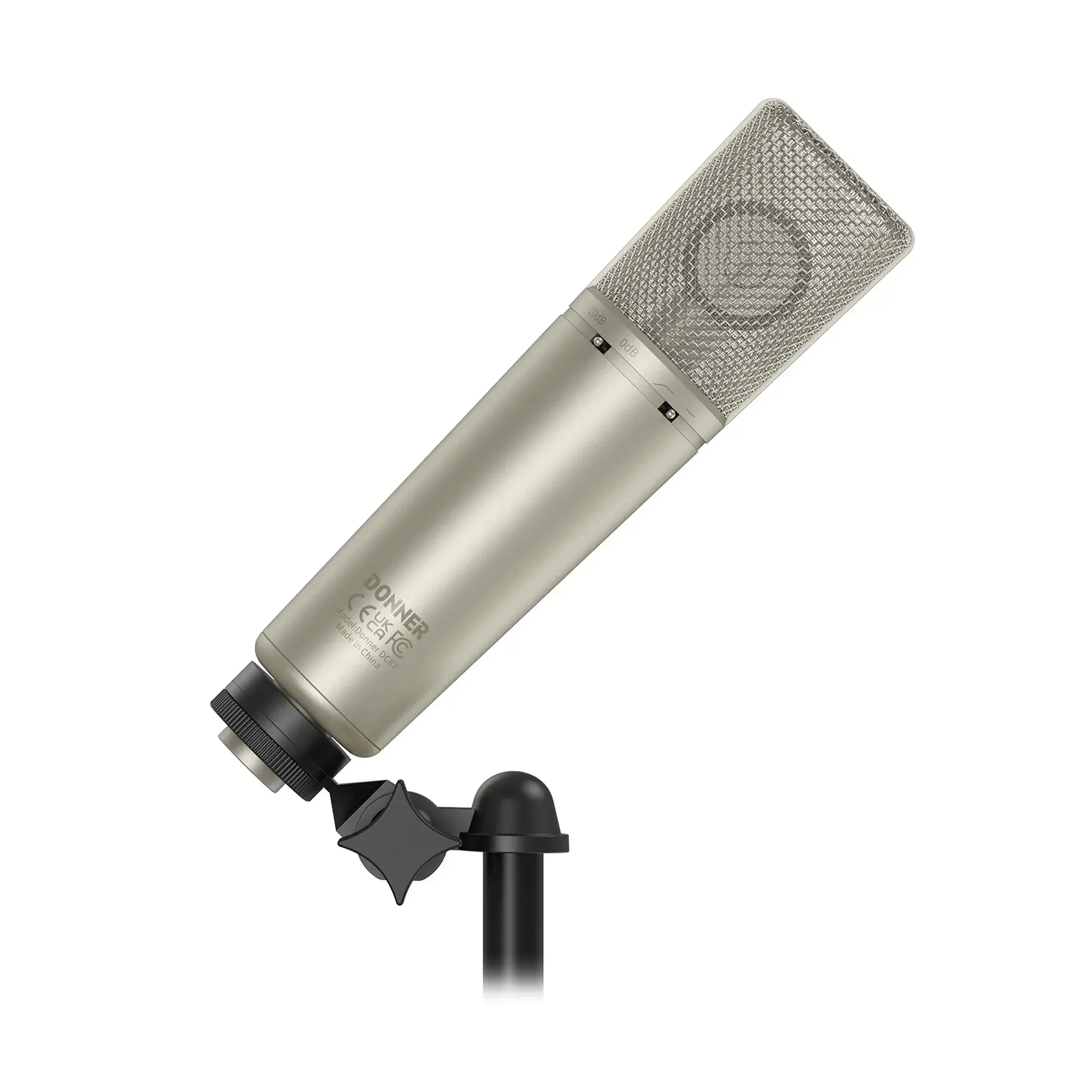 Donner Music DC-87 - конденсаторный студийный микрофон с переключаемым типом направленности. Он может использоваться в студиях звукозаписи, для ведения подкастов и на прямых трансляциях, использоваться для записи акустических инструментов, вокала, фоновых шумов, а также для домашнего использования.