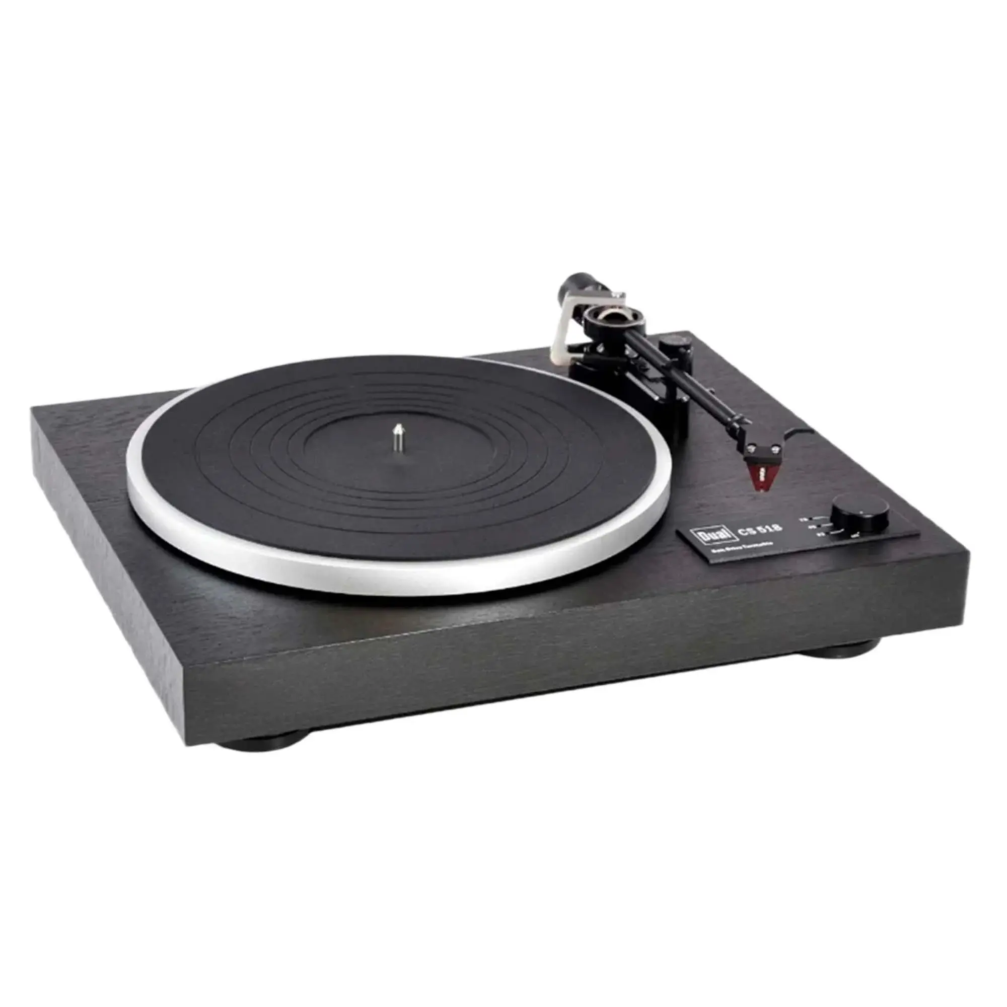 Dual CS 518 оснащен тонармом с двумя карданными шарнирами и шарикоподшипниками для достижения оптимальной точности. Этот тонарм способен управлять звукоснимателями высокого класса с высочайшей степенью точности и надежности. Проигрыватель поддерживает скорости 33/45/78, причем скорость можно легко подстраивать с помощью регуляторов на верхней панели.