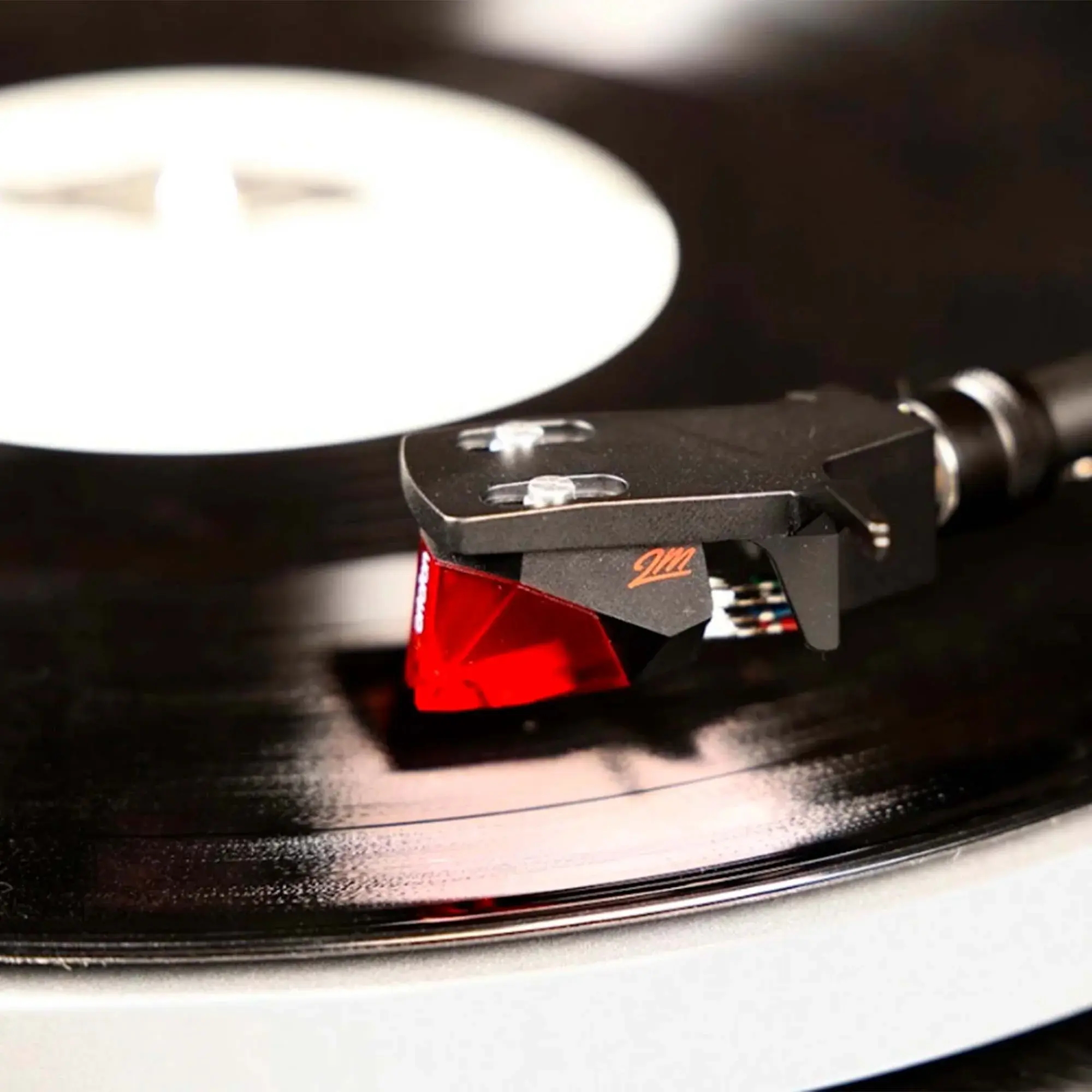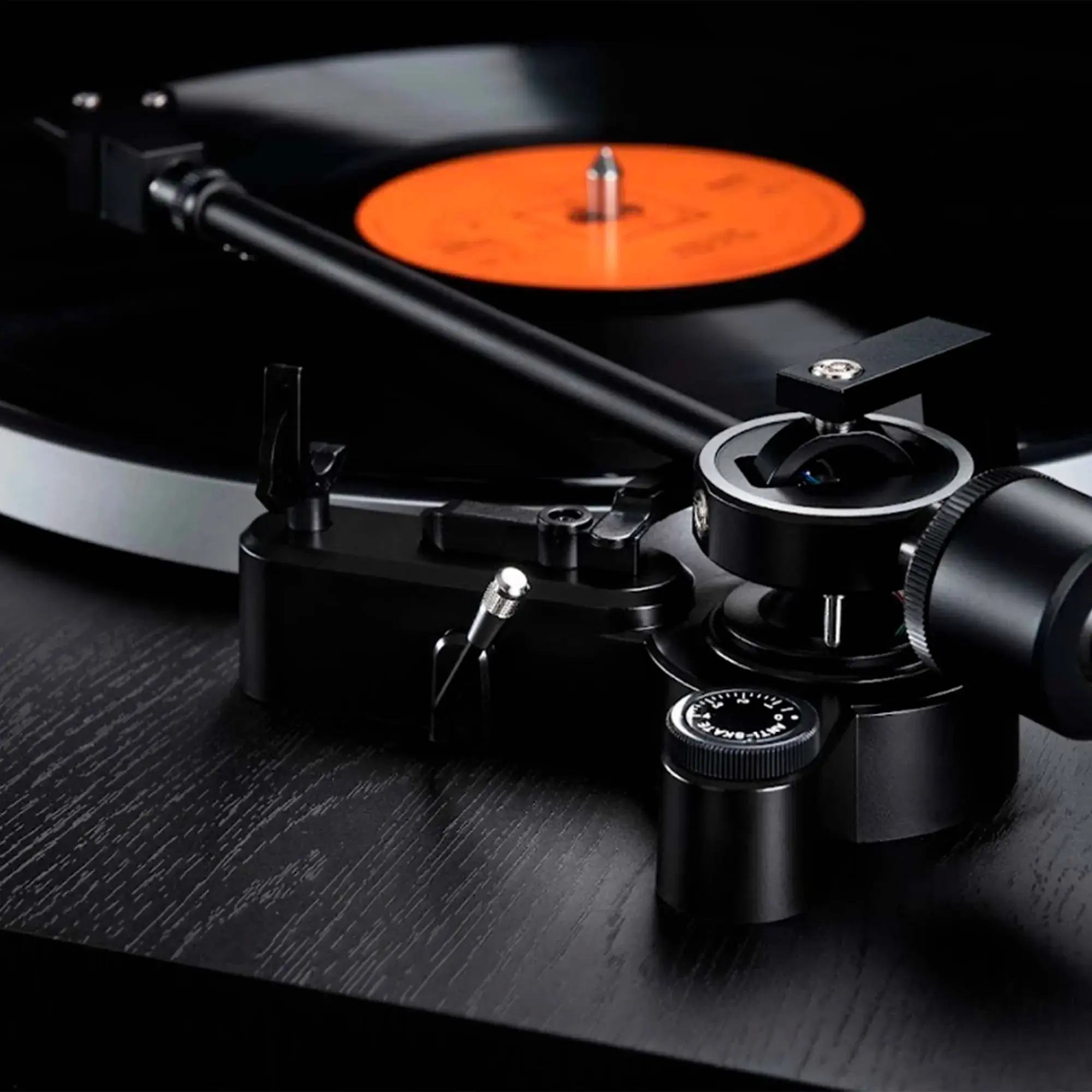 Проигрыватель оснащен карбоновым тонармом с интегрированным шеллом, который обладает отличными демпфирующими свойствами. Применение такого тонарма на модели сравнительно доступной ценовой категории является настоящим подарком для меломанов. Тонарм установлен на опоре карданного типа, в которой используются четыре прецизионных подшипника. Dual CS 518 обеспечивает точное перемещение иглы в звуковой дорожке пластинки, что является залогом наиболее качественного звучания. На модели штатно установлен MM-звукосниматель 2M Red компании Ortofon. Этот картридж завоевал множество наград благодаря превосходному сочетанию качества и цены. Положение звукоснимателя на шелле настроено на заводе, что значительно упрощает первоначальную установку проигрывателя.