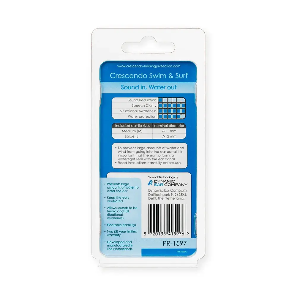 Dynamic Ear Company Crescendo Swim Surf 5 - это универсальные моющиеся беруши, разработанные специально для купания, плаванья и для защиты от попадания влаги.