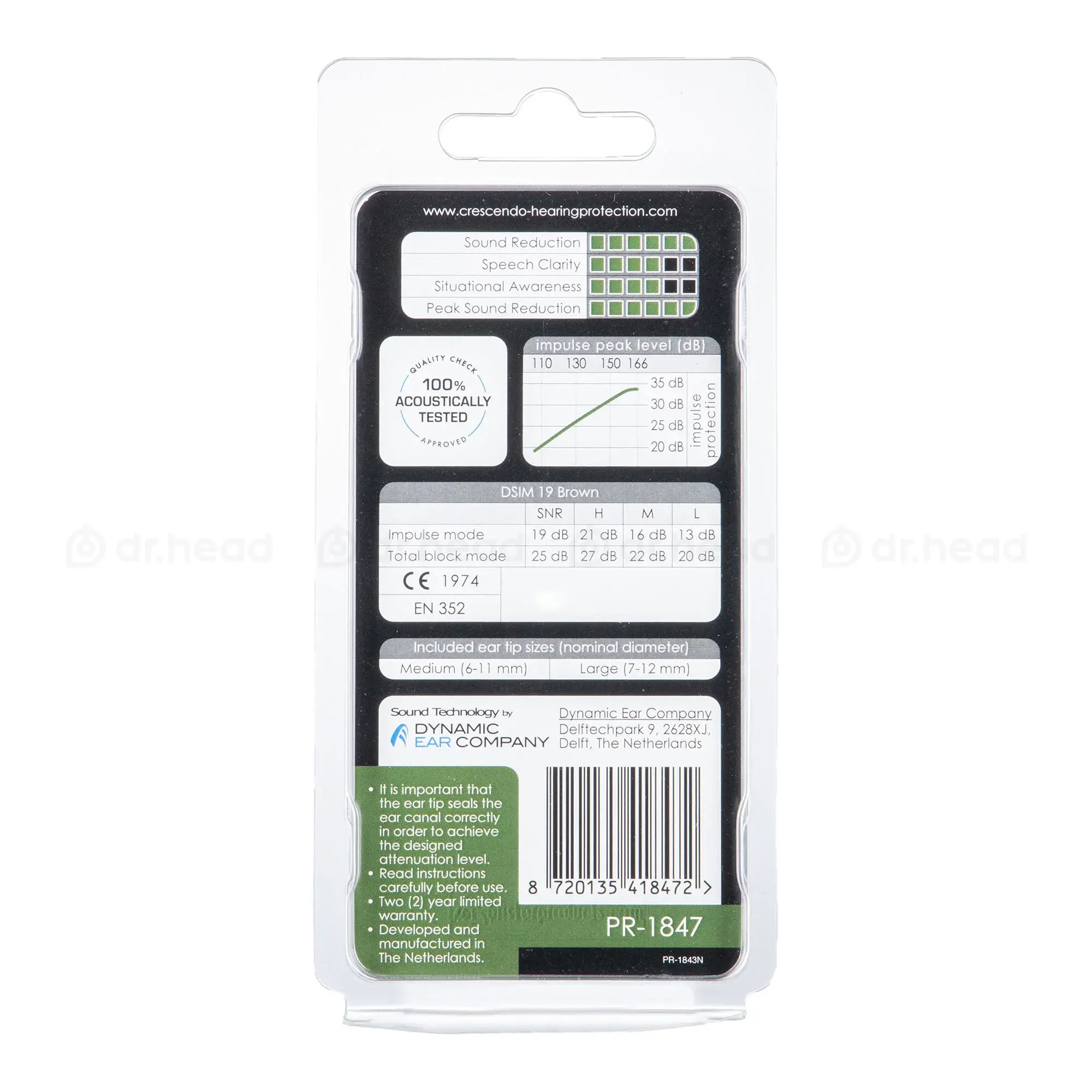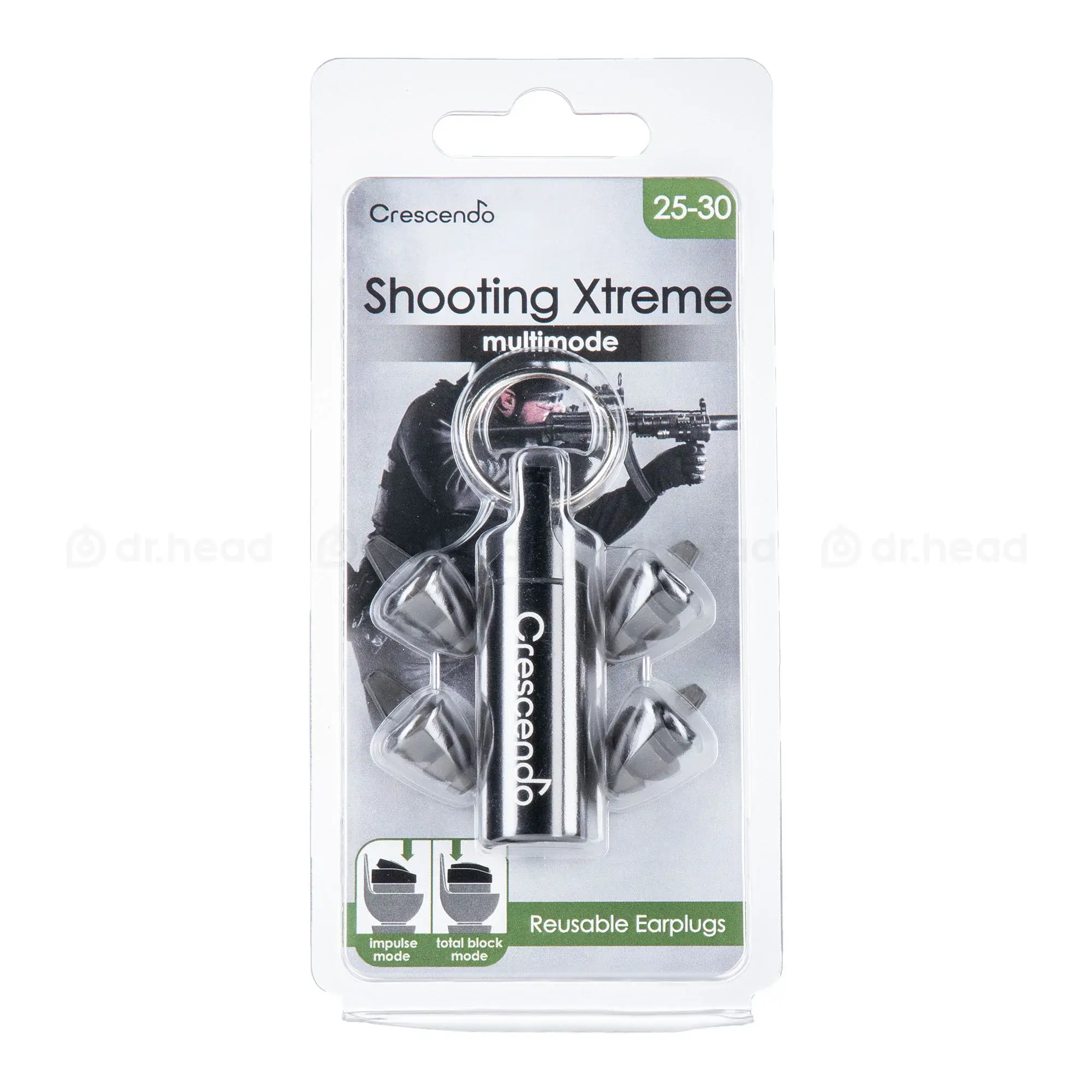 Dynamic Ear Company Shooting Xtreme Multimode. Используя запатентованную технологию импульсного фильтра, разработанную Dynamic Ear Company , Crescendo Shooting Multimode защищает слух от повреждения, вызванного пиковым уровнем звукового давления, создаваемым автоматическим огнем и выстрелами из одиночного ружья, артиллерийским огнем и взрывами, снижая их до безопасного уровня, с меньшей вероятностью вызвать долговременное повреждение слуха.