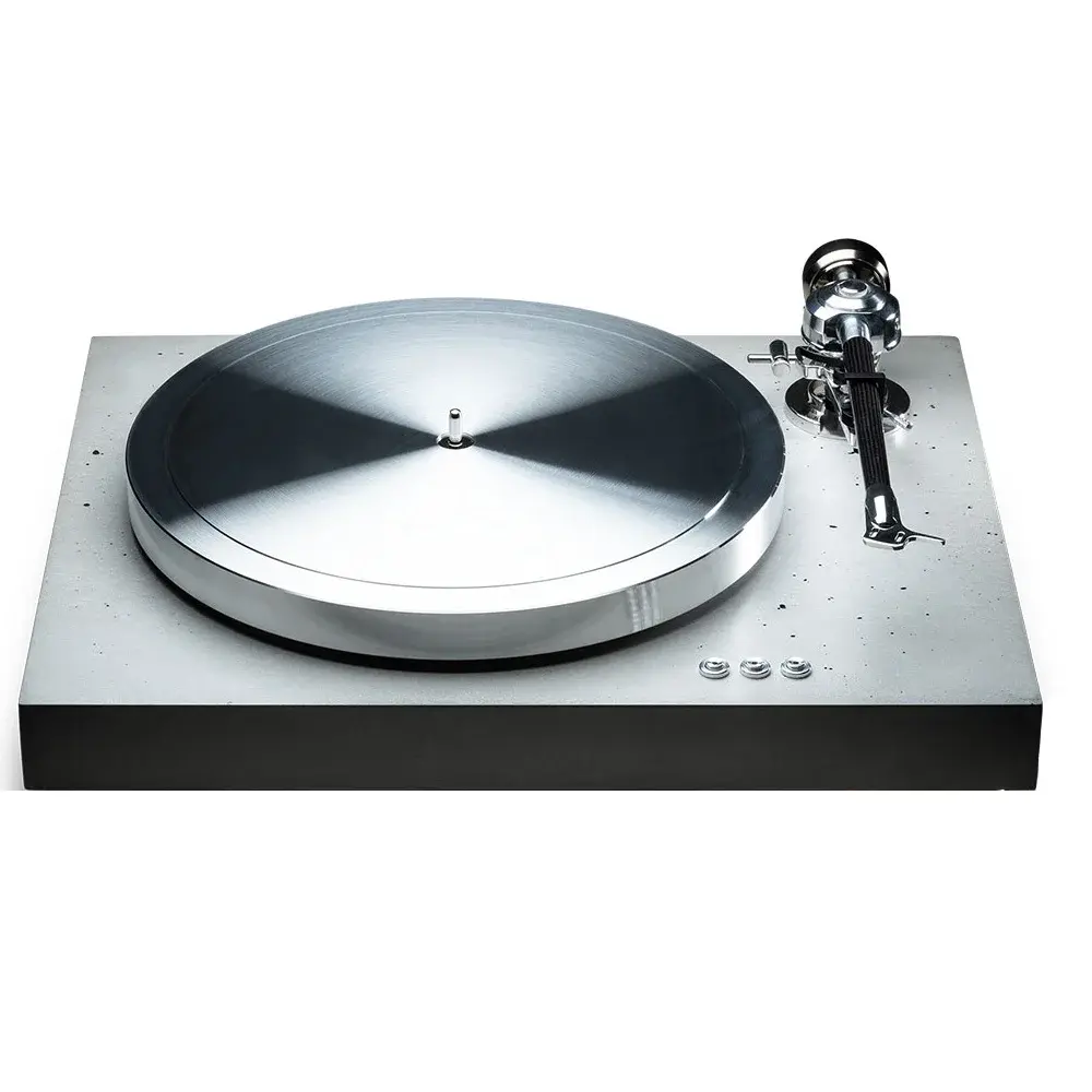 Бетон — это материал, который используется в мире Hi-Fi довольно редко. Некоторые разработчики выбирают его при создании акустических систем, и, конечно же, для изготовления стоек для полочной акустики. Возможно, выбор бетона в качестве материала для проигрывателя виниловых пластинок случился впервые в истории. В European Audio Team утверждают, что выбор бетона для шасси проигрывателя EAT C-Dur Concrete это больше, чем дизайнерское решение; в этом контексте компания говорит о технической целесообразности. Благодаря своим особым свойствам, таким как высокая плотность и, в конечном итоге, большая масса, бетон обладает отличными демпфирующими свойствами и, таким образом, предотвращает возникновение вибраций или резонансов. К слову, вес проигрывателя EAT C-Dur Concrete составляет 32 кг.