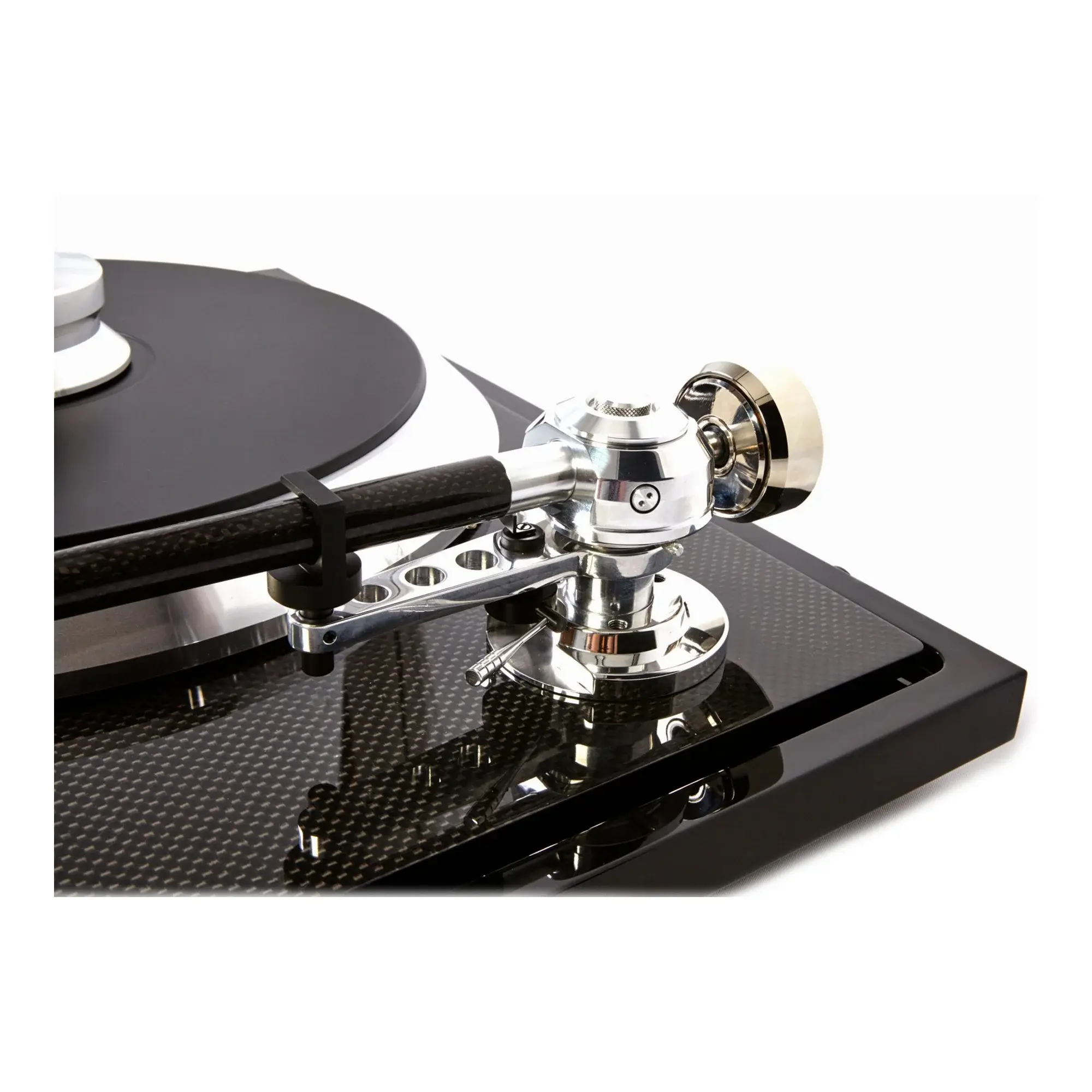 Тонарм представляет собой совершенно новую конструкцию, которая сочетает в себе все преимущества цельноповоротного рычага и карданной конструкции. Цельноповоротный рычаг посередине только снижает нагрузку на подшипник. Традиционный карданный подшипник обеспечивает высокую стабильность и простоту использования при очень низком трении. Кроме того, внутри тонарма находится специальная смазка на основе кремния, которая уменьшает резонансы тонарма и картриджа более чем на 50%