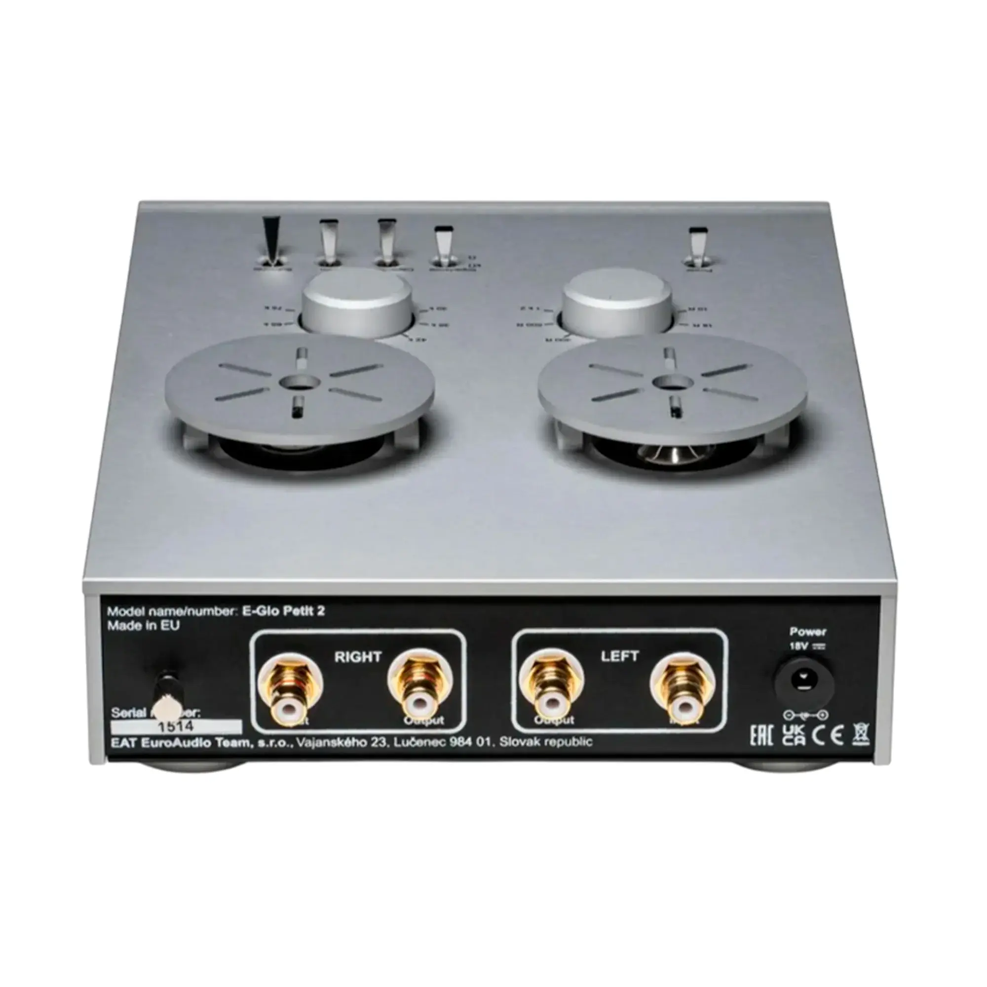E.A.T. E-Glo Petit 2 - гибридный ламповый ММ/МС фонокорректор. E-Glo Petit - младший брат высоко оцененного и отмеченного наградами E-Glo S. Благодаря полностью сдержанному дизайну без операционных усилителей инженеры смогли добиться превосходного звучания в небольшом и компактном форм-факторе. Потрясающая динамика, четкий средний диапазон и высокое разрешение делают E-Glo Petit 2 фоноусилителем, который намного превосходит свой ценовой диапазон.
