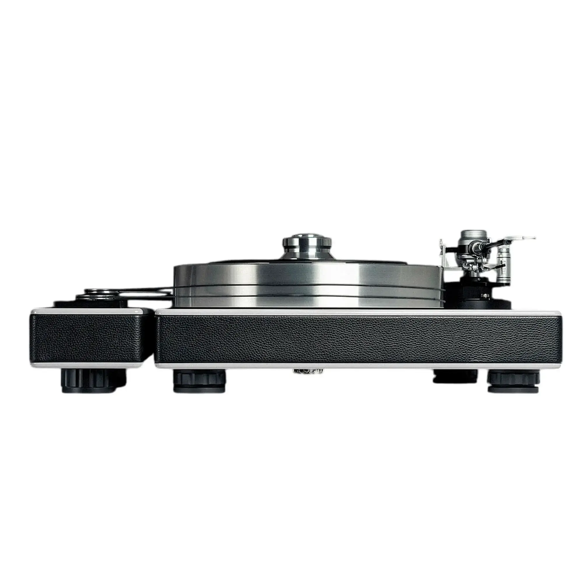 В этой модели используются выносной мотор со сложными электронными цепями для генерации переменного тока 100-процентной чистоты. Это очень тяжелая конструкция с большой массой для устранения любой потенциальной вибрации. Энергия мотора поглощается многослойным корпусом из МДФ и металла. Чтобы устранить шум, было принято решение использовать «двухмоторную конструкцию». За счет применения двух относительно слабых и тихих двигателей достигнут идеальный крутящий момент.