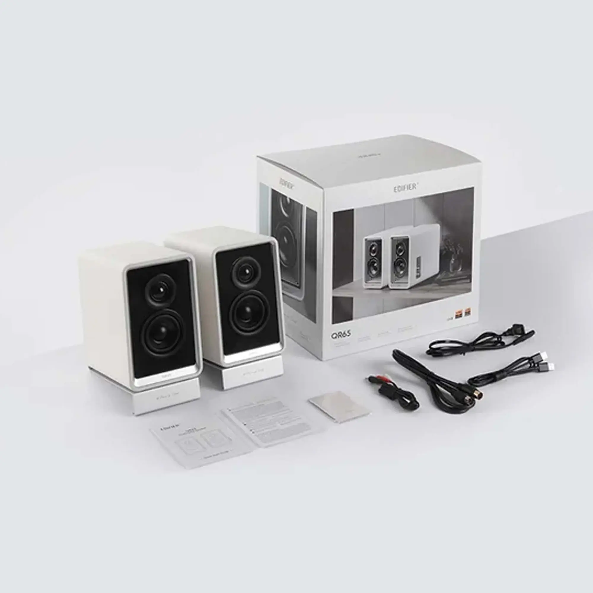 Активные мониторы Edifier QR65 также прошли сертификацию Hi-Res Audio и Hi-Res Audio Wireless, благодаря чему наслаждаться музыкой высокого качества можно без лишних проводов. Edifier QR65 отличается ярким дизайном в сочетании с исключительным качеством сборки, что значительно выделяет его среди других настольных динамиков. Выбор вариантов отделки — либо гладкий белый с текстурой, напоминающей кожу, либо классический, сдержанный черный – позволяет ему органично вписаться в самые разные интерьеры, от элитного домашнего офиса до минималистичного жилого пространства.
