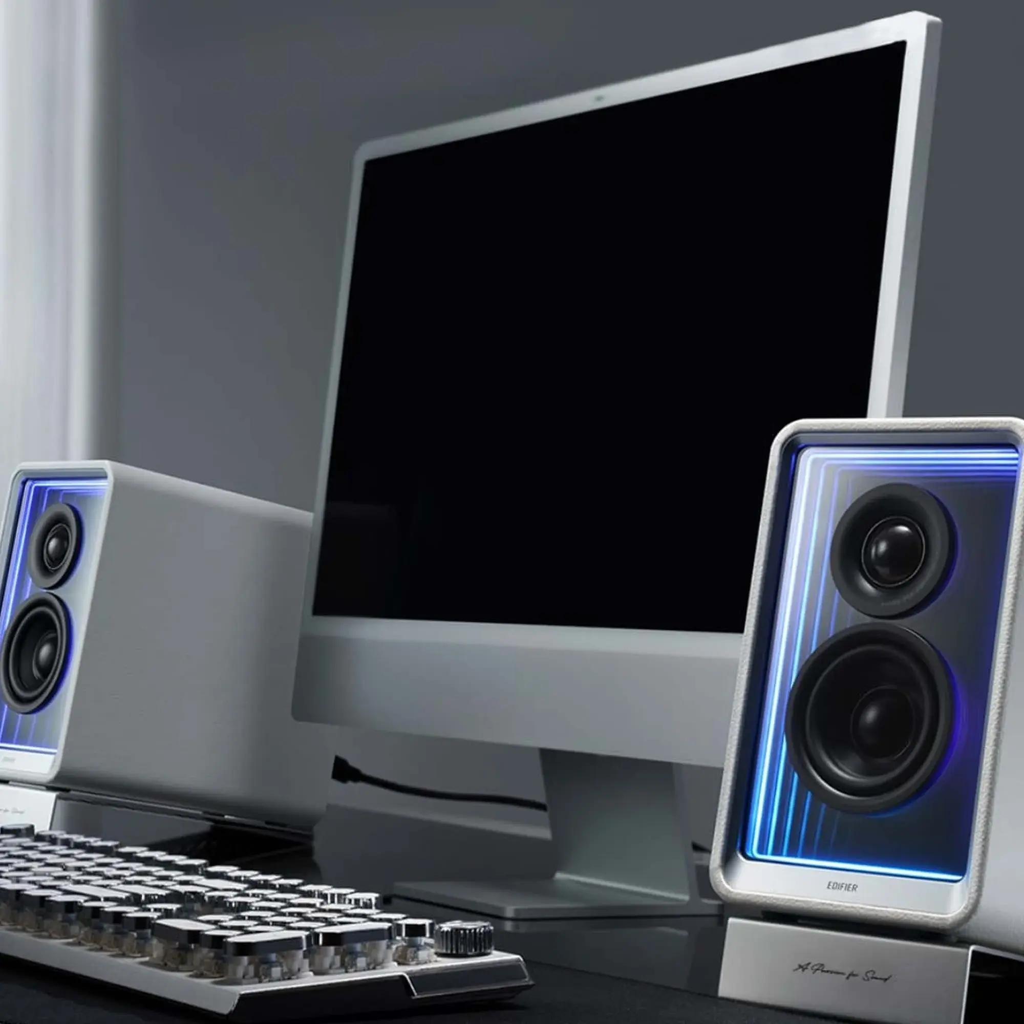 Корпус колонок выполнен из МДФ. RGB подсветка поддерживает 11 предустановленных световых эффектов, дополнительные настройки производятся через приложение Edifier Connect. Прозрачный корпус легко впишется в рабочее пространство за счет стильного дизайна. Использование МДФ для изготовления корпуса и внимание к снижению шума в порту и акустического резонанса с помощью фазоинверторных каналов MazeTube и технологии подавления воздушного шума TurbMuff свидетельствуют о стремлении Edifier к целостности звучания. Такие конструктивные решения способствуют более чистому воспроизведению звука, сводя к минимуму нежелательные шумы и искажения.