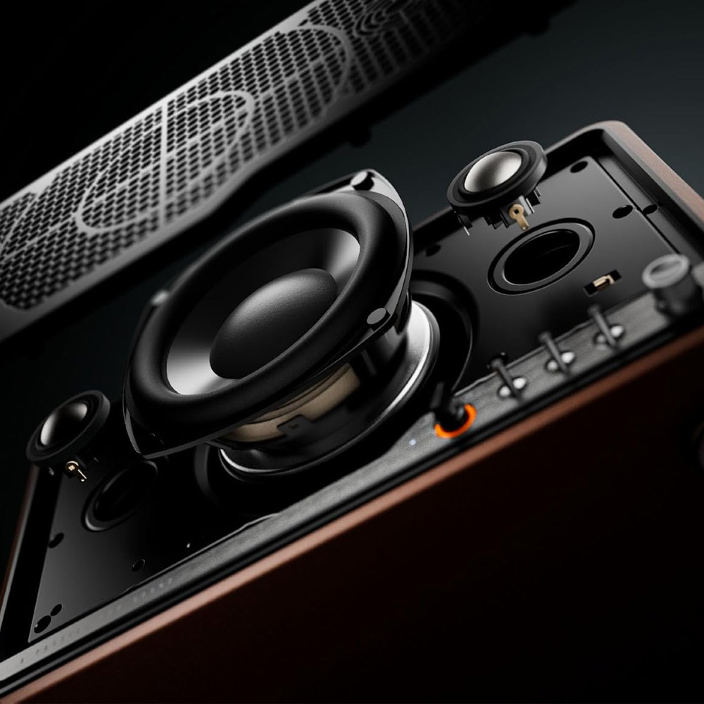 Система Edifier S300 построена на основе тщательно выверенной комбинации акустических элементов. Два 15-ваттных твитера с титановыми куполами передают насыщенные и яркие высокие частоты, а 5,5-дюймовый низкочастотный динамик с алюминиевым диффузором (50 Вт) создаёт глубокие и мощные басы. Вместе они формируют плотную звуковую сцену с широкой амплитудой, где каждый инструмент звучит с точностью и энергией.